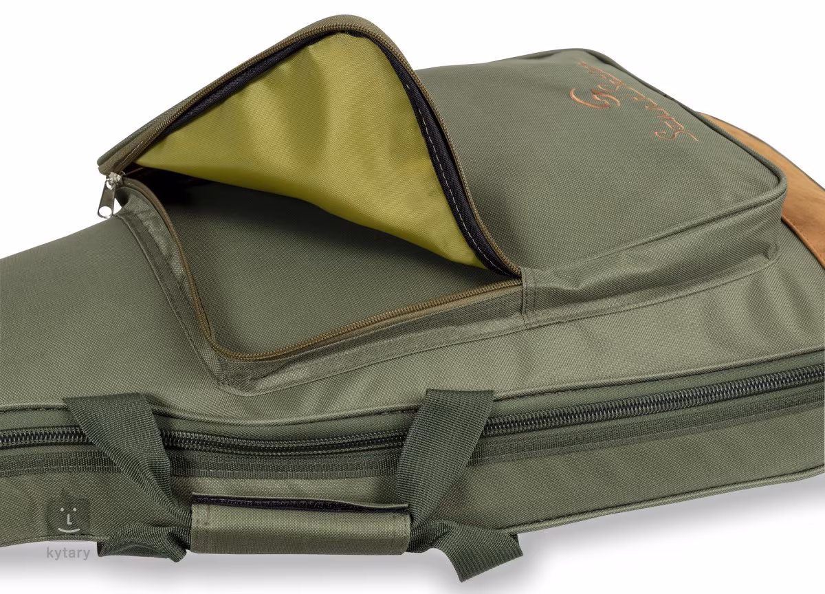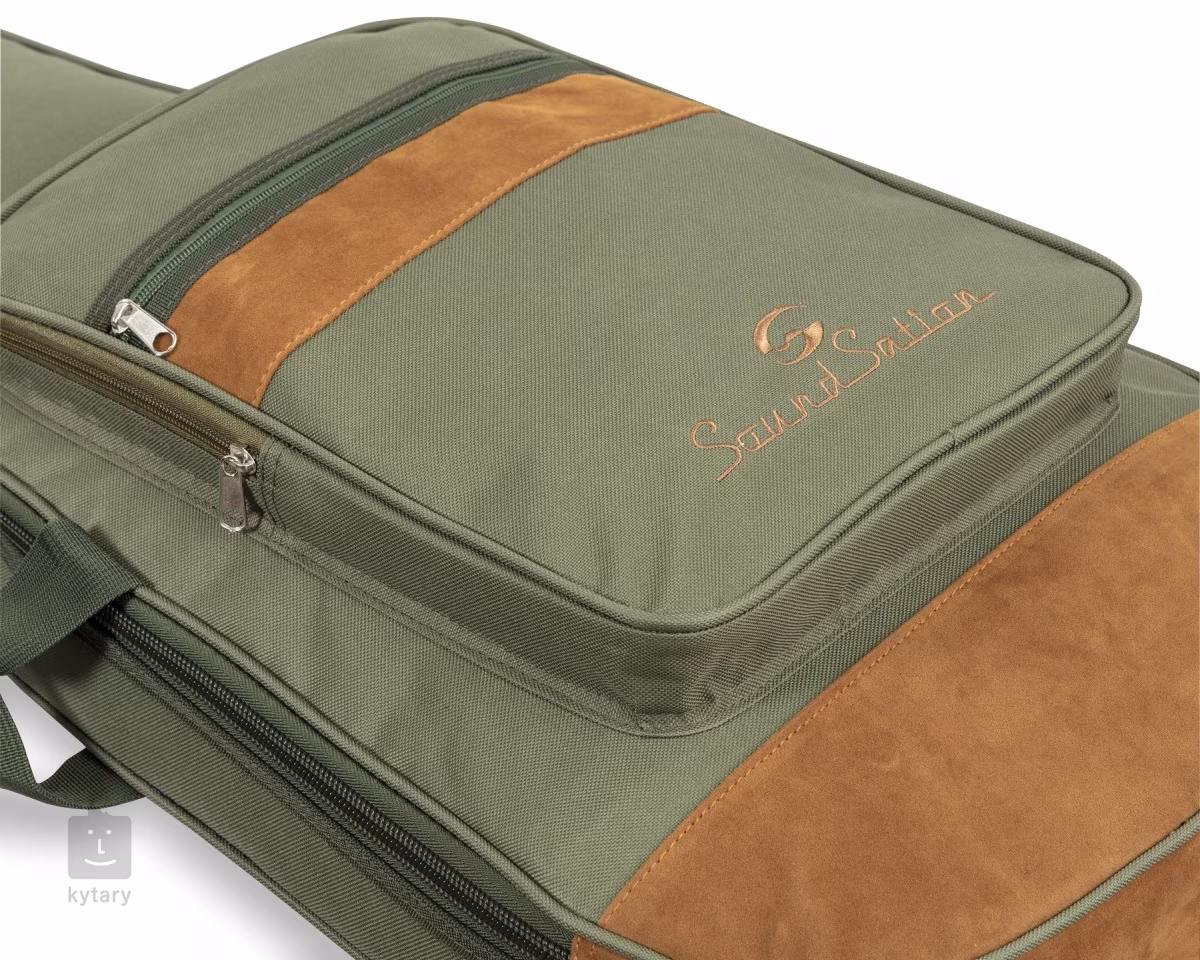 Soundstation SUEDE je stylový obal s vložkami ze semišové kůže, který nabízí 10 mm EPE vycpávku pro maximální ochranu vašeho nástroje. Obal má tři kapsy pro příslušenství a noty, je vybaven nastavitelnými popruhy, zadním a bočním úchytem a zdoben vyšívaným logem společnosti.