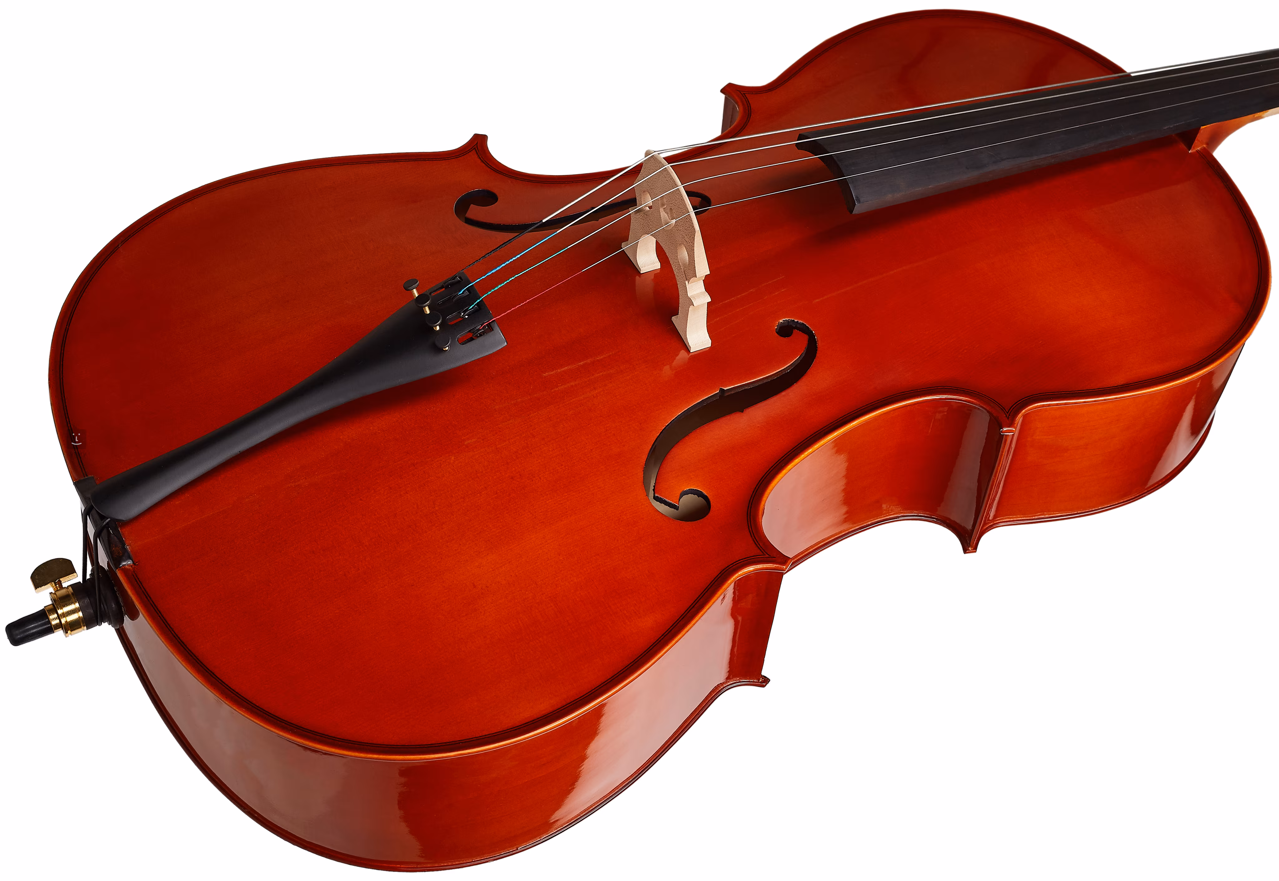 Violoncello se dodává včetně polstrovaného obalu a smyčce s osmihranným průřezem hůlky a přírodními žíněmi.