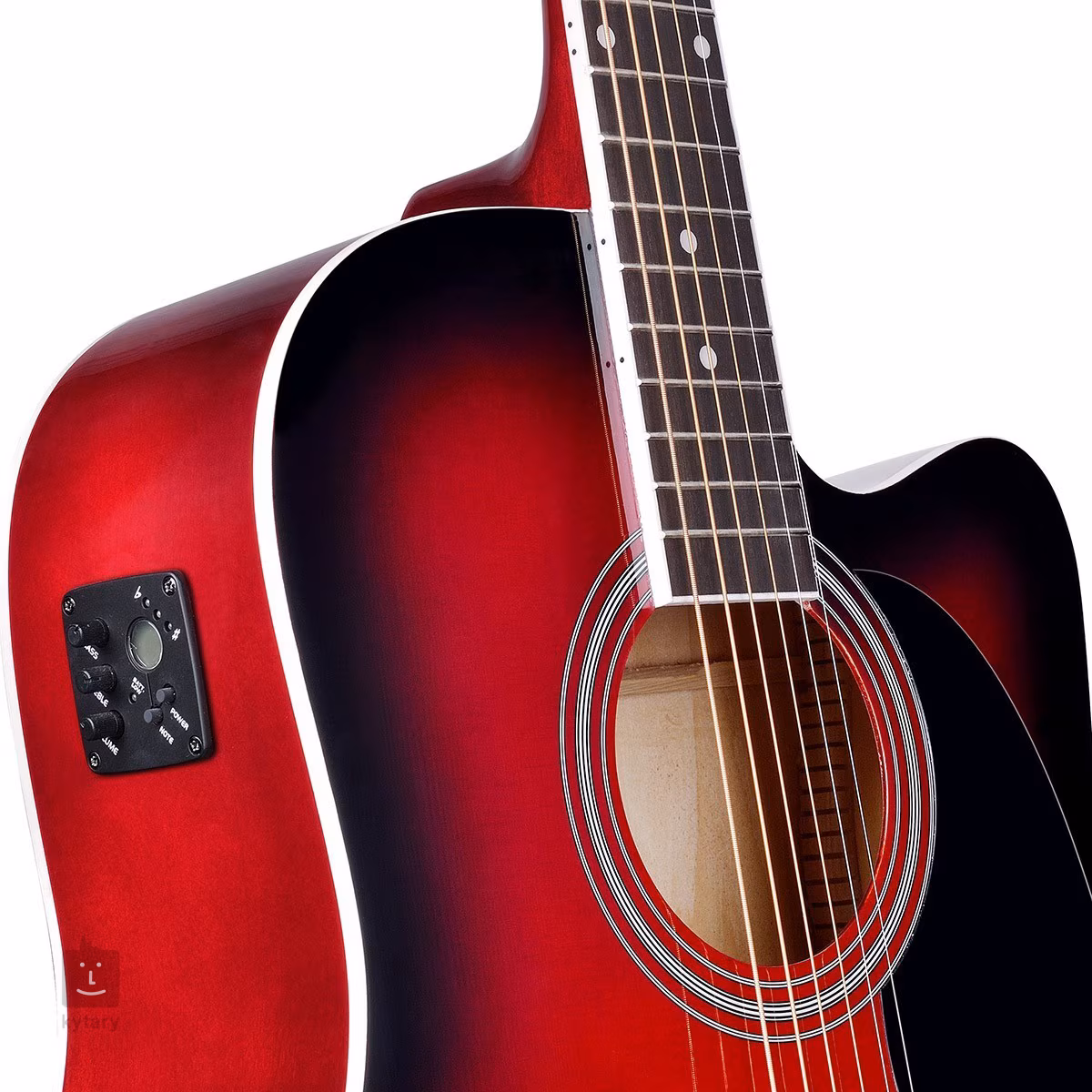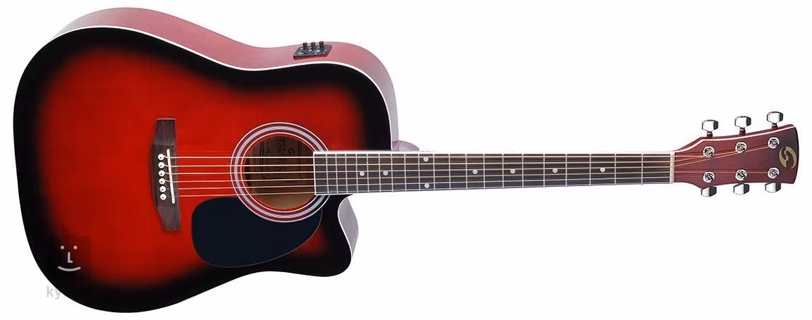 Přední deska elektroakustické kytary YELLOWSTONE-DNCE-RDS je zhotovena z překližovaného smrku, zadní deska a luby jsou vyrobeny z překližované lípy. Hmatník z blackwoodu je osazen dvaceti pražci, orientaci na hmatníku usnadňují poziční tečky. Struny jsou uchyceny v chromovaných die-cast ladících mechanikách a kobylce z blackwoodu. Stylové zpracování podtrhuje obvodová lemovka těla, krku a hmatníku, finiš red burst a černý pickguard.