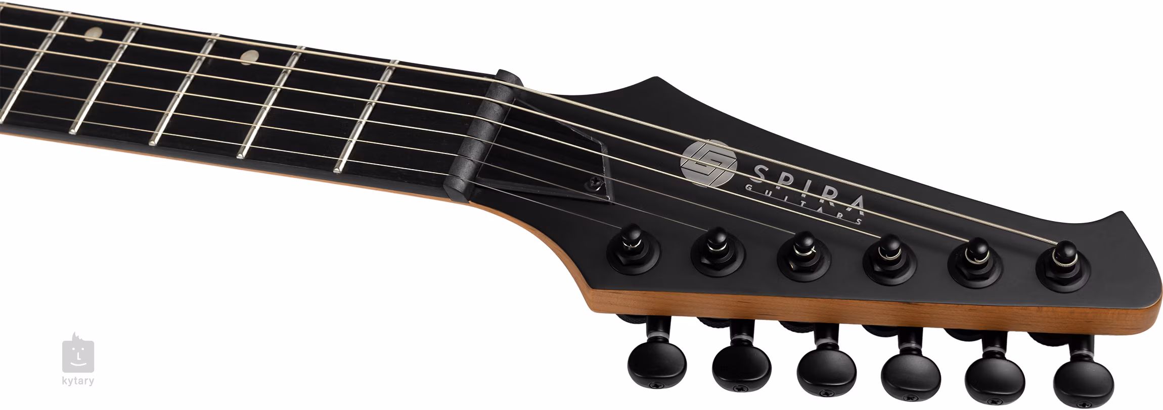 Dva firemní humbuckery Spira Villain s keramickým magnetem a silnějším výstupem poskytují kytaře šťavnatý zvuk, který zvláště oceníte v high-gain nastavení. S nastavením zvuku lze pracovat pomocí standardních ovladačů. Struny jsou uchyceny ve firemních uzamykatelných mechanikách a přes pevnou kobylku skrze tělo. Stylové zpracování podtrhuje matný lak a černý hardware.
