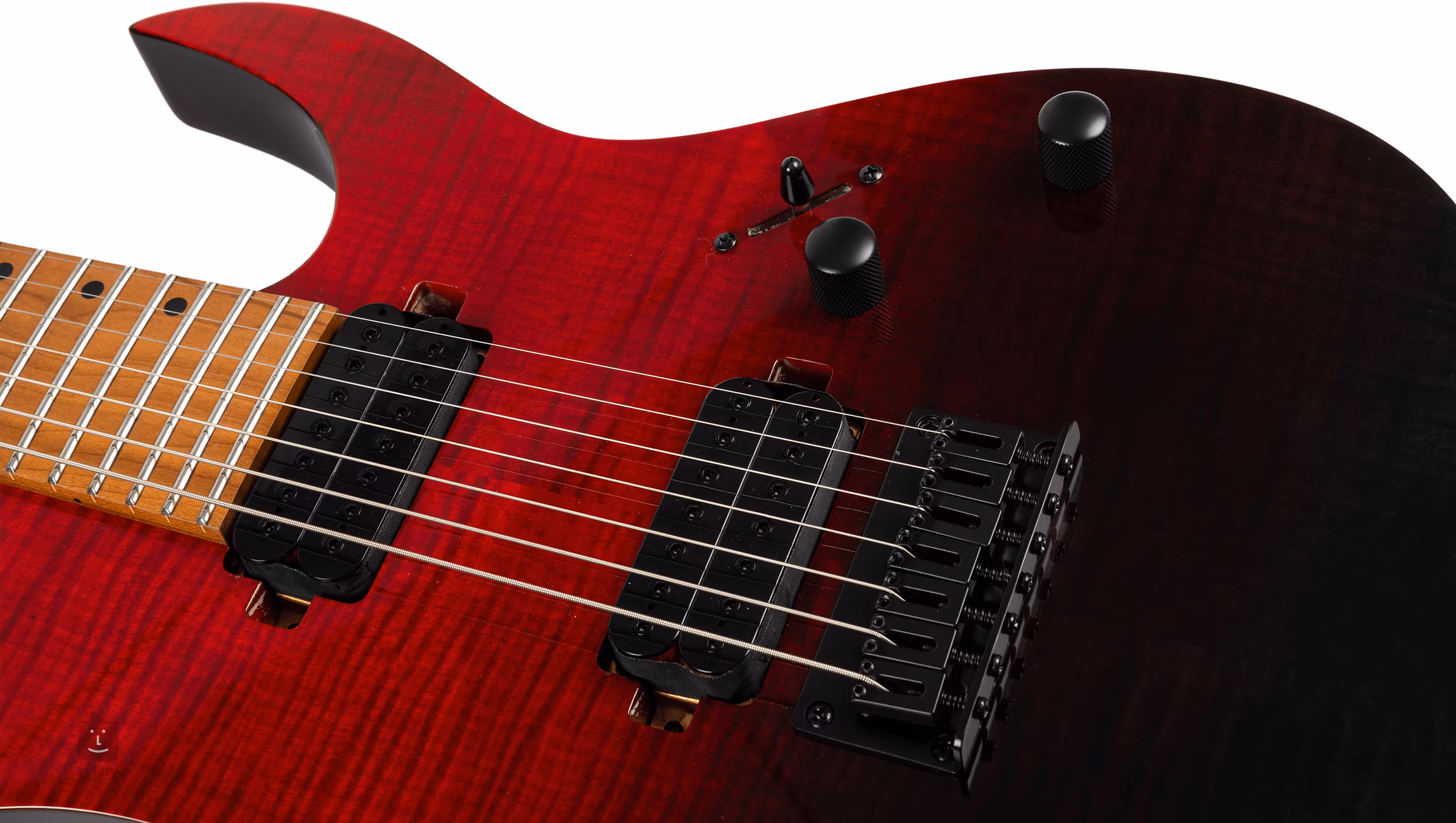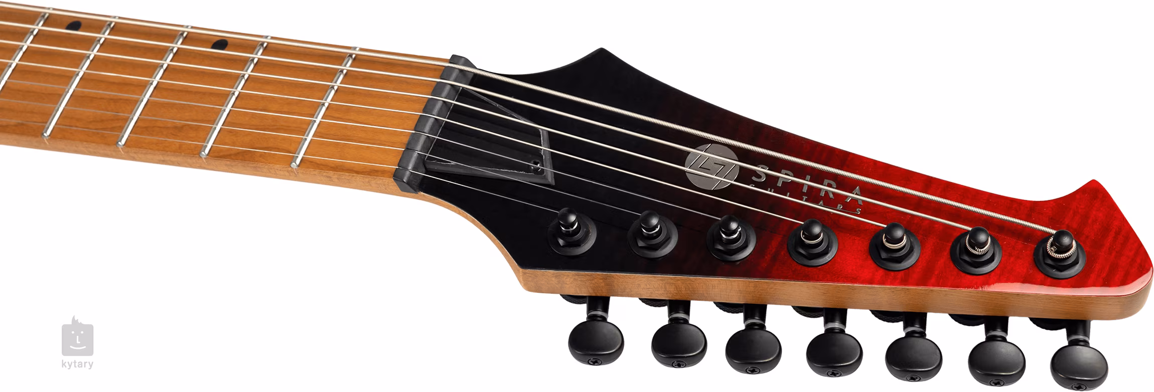 Spira Guitars S-457 TRD je cenově dostupná sedmistrunná elektrická kytara s moderním Super ST designem určená hráčům současných hudebních stylů, které pracují s nižším laděním - od moderní rocku a metalu po metalcore, djent a další subžánry. Tělo kytary zdobí vrchní dýha z fládrovaného javoru a barevný finiš Transparent Red. Ke krku z kanadského javoru s “Modern D” profilem je přilepen javorový hmatník osazený čtyřiadvaceti pražci velikosti Jumbo. Díky tepelné úpravě těla, krku a hmatníku je dřevo stabilnější.