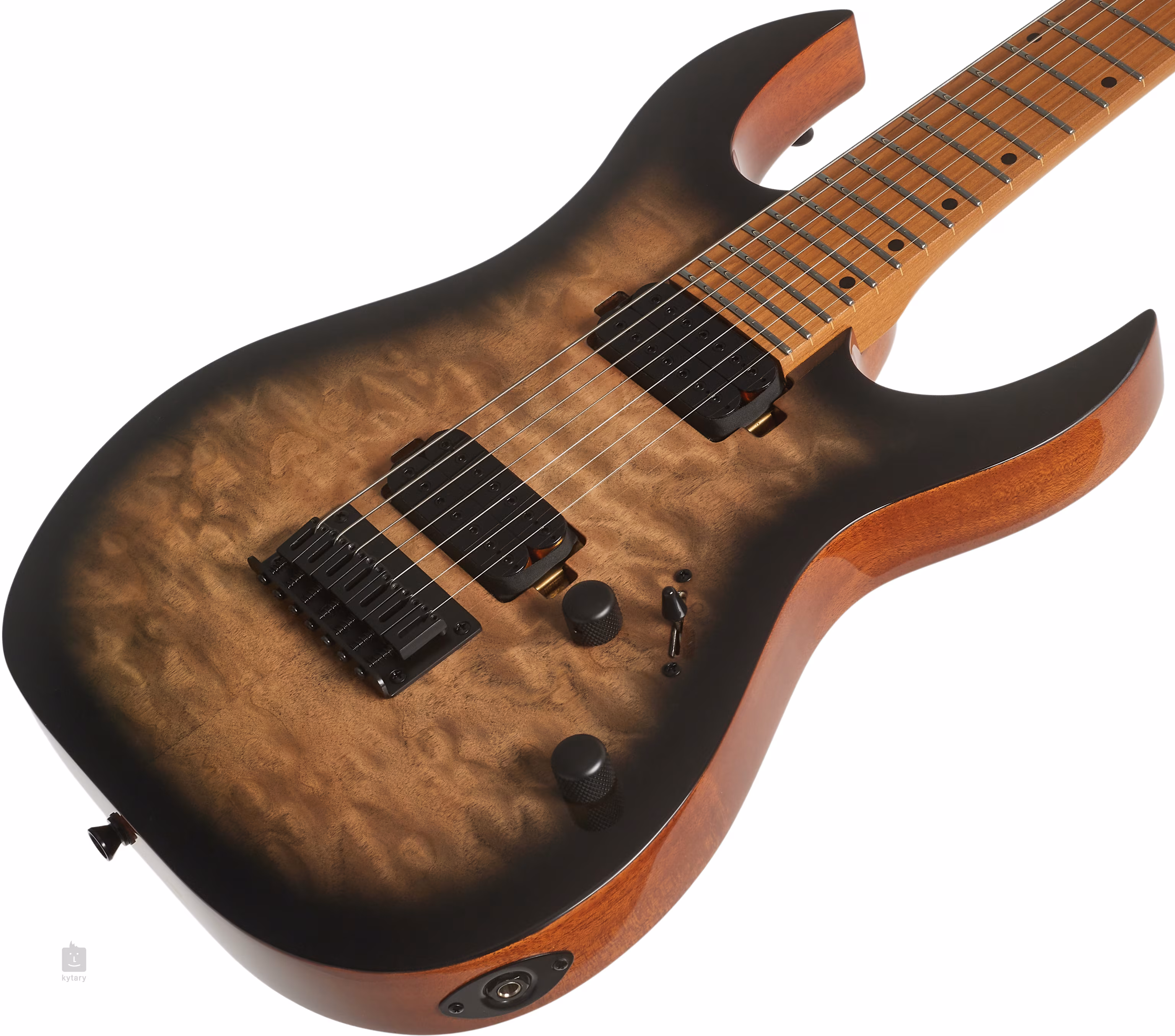 Spira Guitars S-507 QDS Limited je cenově dostupná sedmistrunná elektrická kytara z limitované řady značky určená hráčům současných hudebních stylů, které pracují s nižším laděním - od moderního rocku a metalu po metalcore, djent a další subžánry. Mahagonové tělo kytary zdobí efektní vrchní dýha z obláčkového javoru. Z javoru je zhotoven i krk s pohodlným “Modern D” profilem a hmatník nástroje osazený čtyřiadvaceti pražci velikosti Jumbo. Díky tepelné úpravě je dřevo krku a hmatníku stabilnější.