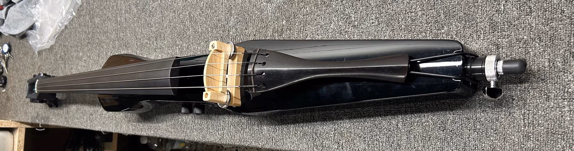 4/4 elektrické violoncello. Tělo masivní javor, krk javor, hmatník ebonizované dřevo, niklovaná mechanika typu diecast. Aktivní předzesilovač, kobylkový piezo snímač, dva potenciometry pro ovládání basů a hlasitosti, výstup 3,5 mm stereo mini jack pro sluchátka, vstup 1/8" stereo mini jack pro připojení CD nebo MP3 přehrávače, linkový výstup mono jack. Ergonomicky tvarované kovové podpěry, potažené měkkým plastem, na spodní straně masivní kovový výsuvný bodec. Dodáváno včetně nylonového pouzdra a smyčce.