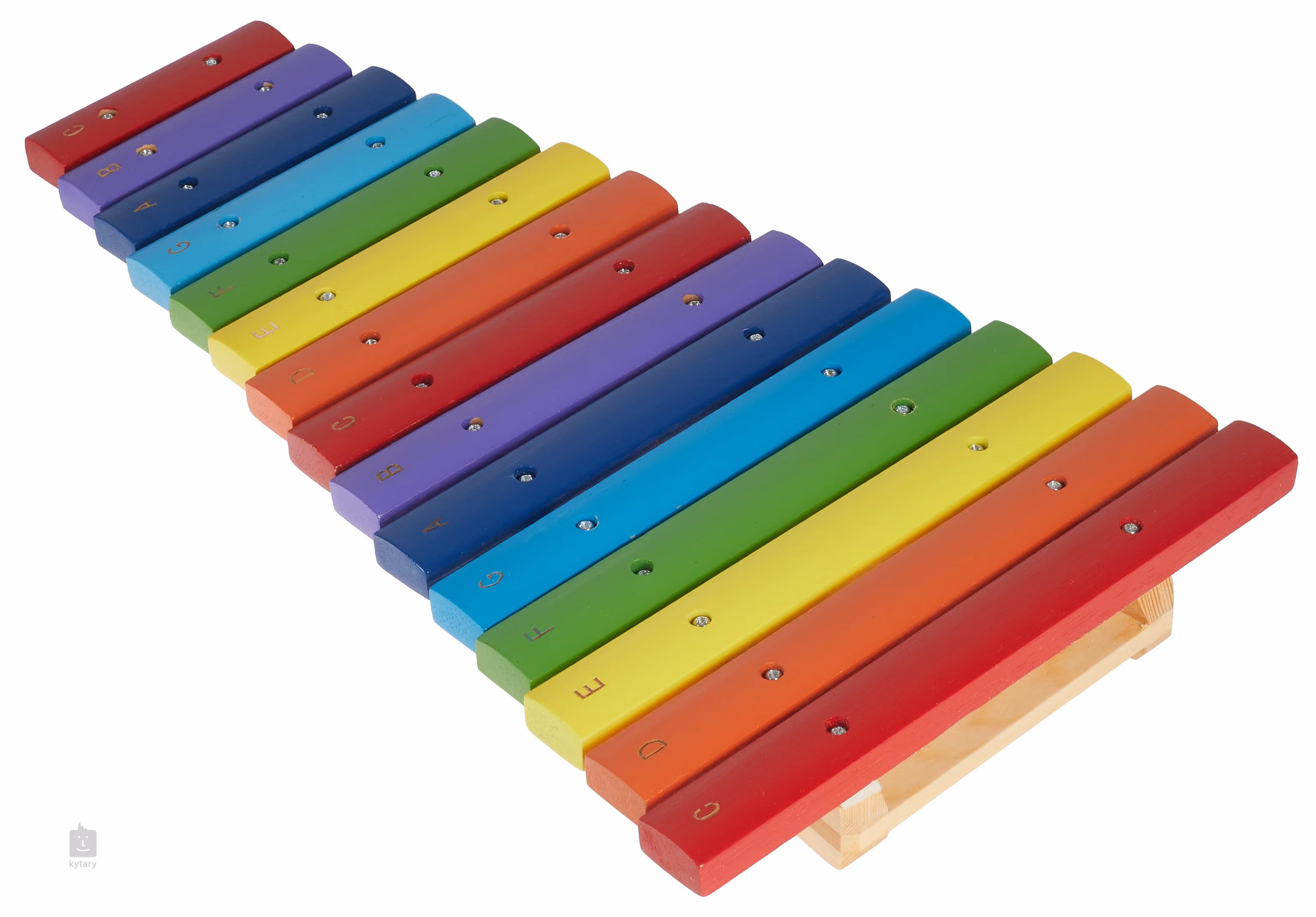 Dřevěný xylofon s barevnými kamínky vhodný pro hudební výchovu a rozvoj motoriky dětí. Rám nástroje je vyroben z borovice a jednotlivé kameny z modřínu. Všechny barevné kameny jsou označeny příslušným tónem, rozsah xylofonu jsou dvě oktávy (15 kamenů). S nástrojem je dodáván pár dřevěných paliček.