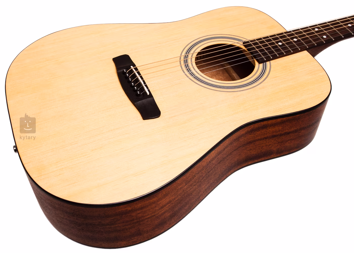 Kytary typu Dreadnought jsou obecně velmi populární díky svému univerzálnímu použití. Jejich vyrovnaný zvuk a hlasitý tón našel uplatnění již v mnoha hudebních stylech. Horní deska kytary je vyrobená ze smrku, luby a zadní desku tvoří mahagon. Ozvučnicový otvor lemuje motiv rybí kosti, kontury korpusu zvýrazňuje černý lem. Palisandrový hmatník na mahagonovém krku je osazený dvaceti pražci a pro snadnou orientaci během hry poslouží polohové značky. Spolehlivé ladění a intonaci zaručují uzavřené mechaniky v chromovaném provedení, nultý pražec z umělé kosti (PPS) a kompenzované sedlo zasazené v palisandrové kobylce. Struny jsou uchycené kolíky, které jsou dozdobené bílými očky.