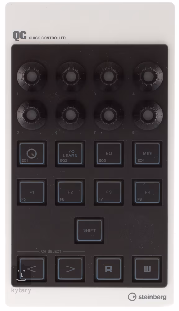 CMC QC jednotka obsahuje 13 podsvícených tlačítka a osm otočných ovladačů se zelenými LED světly, která mění intenzitu osvětlení v závislosti na nastavené poloze. Pro zajištění maximální flexibility nabízí ovladač třemi speciální pracovní režimy – EQ, Quick Control a MIDI. V režimu EQ zrcadlí otočné ovladače Channel EQ Cubase a umožňuje vám přesnou kontrolu nad frekvencí, zesílením a úrovní šířky pásma. Ideální volba pro nadšence, kteří chtějí zvuk vyladit do detailů. QC režim rychlé kontroly nabízí výkonné Quick Controls Cubase na dosah ruky, včetně jejich potenciálu na vytvoření speciálních efektů a přesná automatizační data. Přiřazení je tak rychlé, jak je to jen možné: vyberte parametr v Cubase, stiskněte F/Q Learn tlačítko a pootočte požadovaným ovladačem – to je vše. Plus, univerzální MIDI režim změní CMC QC na volně konfigurovatelný MIDI ovladač a rozšiřuje tak tvůrčí prostor.