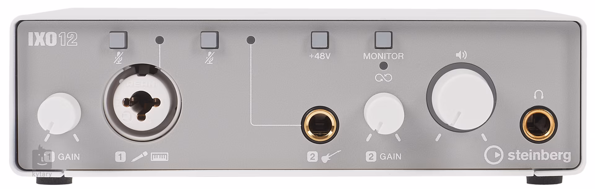 Steinberg IXO12 je dvoukanálové audio rozhraní se dvěma vstupy, dvěma výstupy a USB-C připojením.