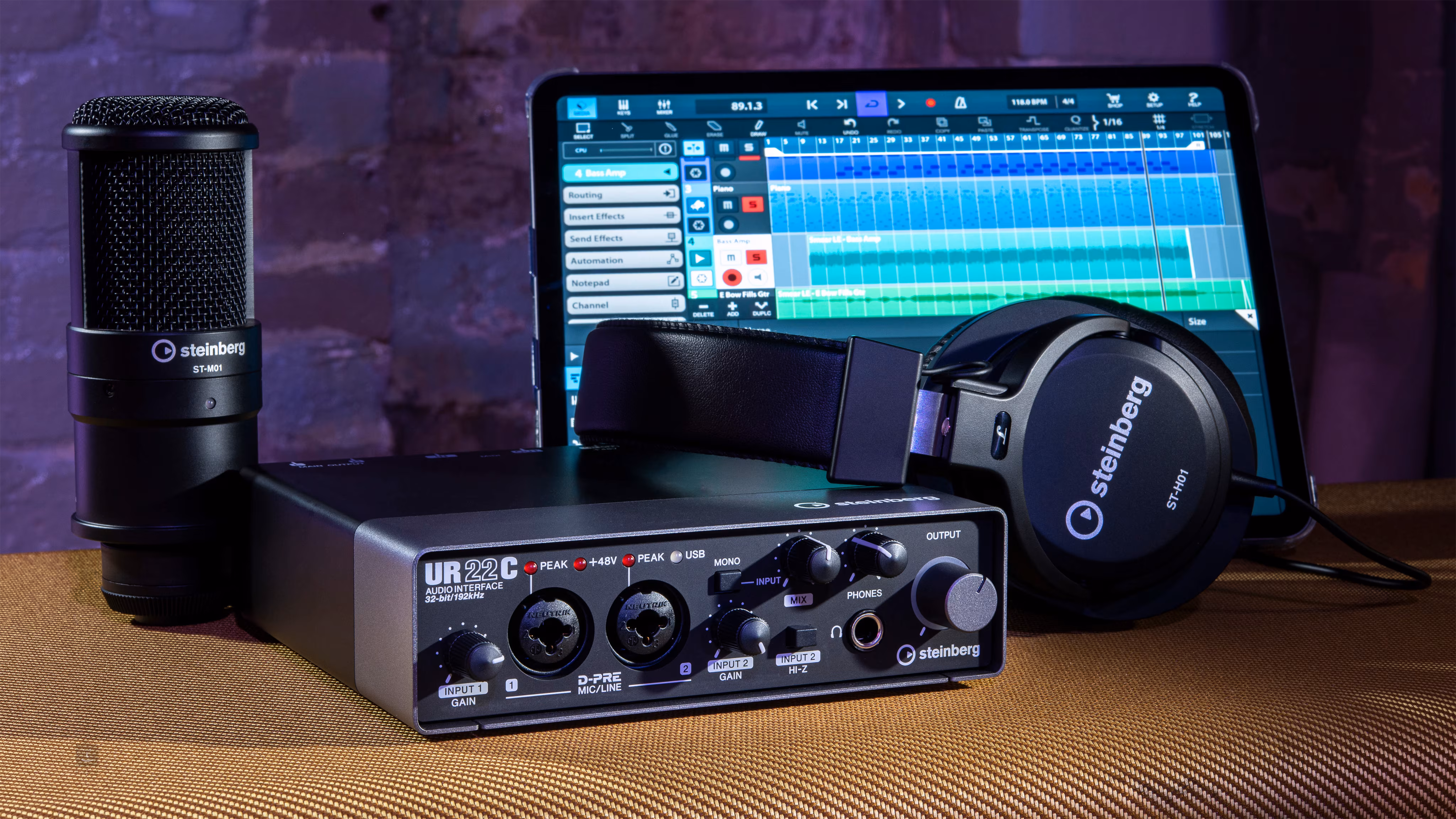 Centrem vašeho nového domácího studia je zvuková karta UR22C s kvalitními převodníky schopnými nahrávat v rozlišení 32 bit/192 kHz – tedy v CD kvalitě. Do dvou kombinovaných vstupů můžete zapojit mikrofon nebo nástroj a pro připojení digitálních kontrolérů je k dispozici také MIDI.