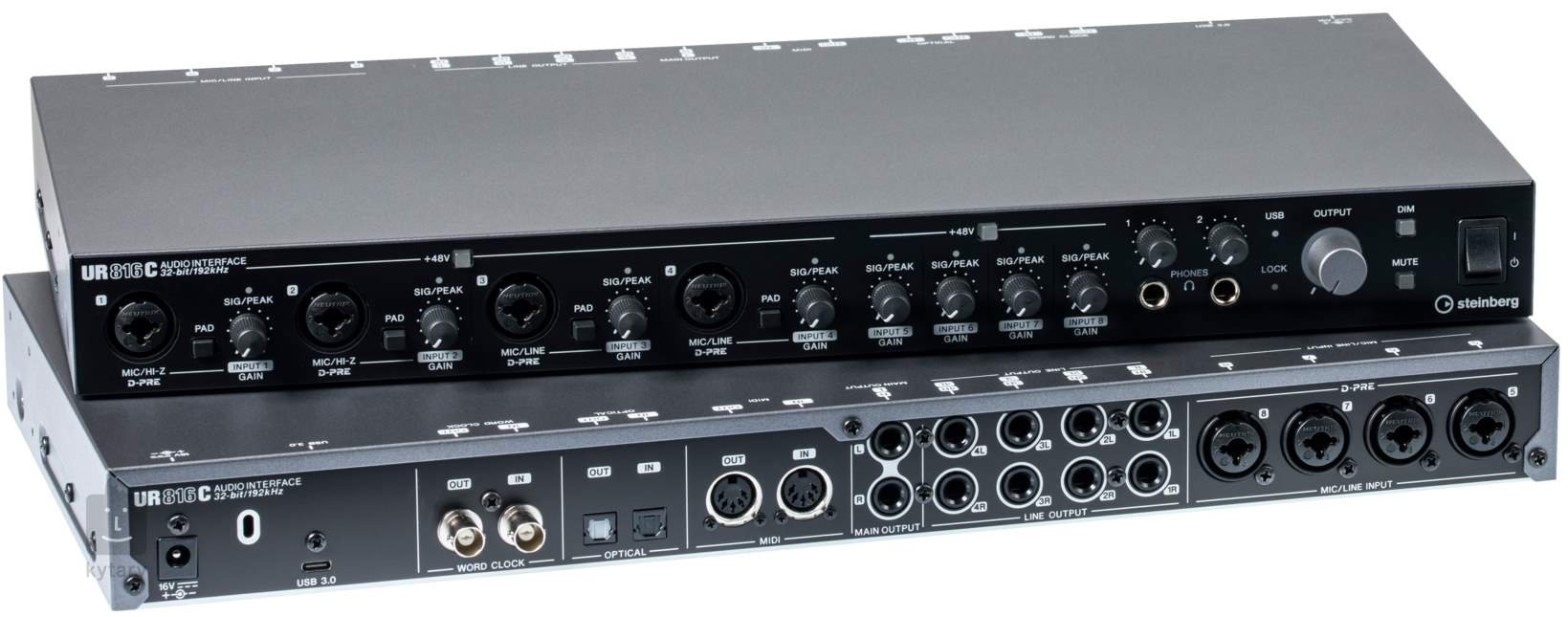 Steinberg UR816C patří mezi novinky, které přišly s novou řadou zvukových karet URC. profesionální zpracování a skvělé uživatelské vlastnosti dělají ze zvukovky srdce vašeho nahrávacího studia. Získá si vás především intuitivním ovládáním a flexibilním využitím, připojit k ní můžete opravdu vše co vydává nějaký zvukový signál. Osm vstupů vám umožní nahrát akustický a komorní koncert, pěvecký sbor nebo vokální kvartet. Výstupní signál je v kvalitě 32bit/192 kHz, všechny kanály nabízí vestavěný prvotřídní D-PRE mikrofonní předzesilovač třídy A pro křišťálově čistý, jasný a silný zvuk. UR816C navíc disponuje technologií SSPLL redukující chvění a okolní ruchy, proto budou vaše studiové nahrávky vždy profesionální a separované od nepříznivých okolních ruchů.