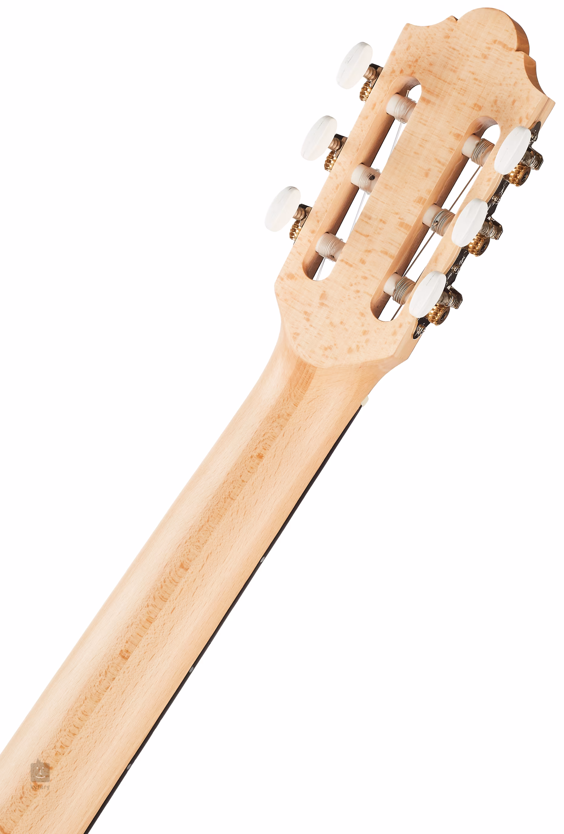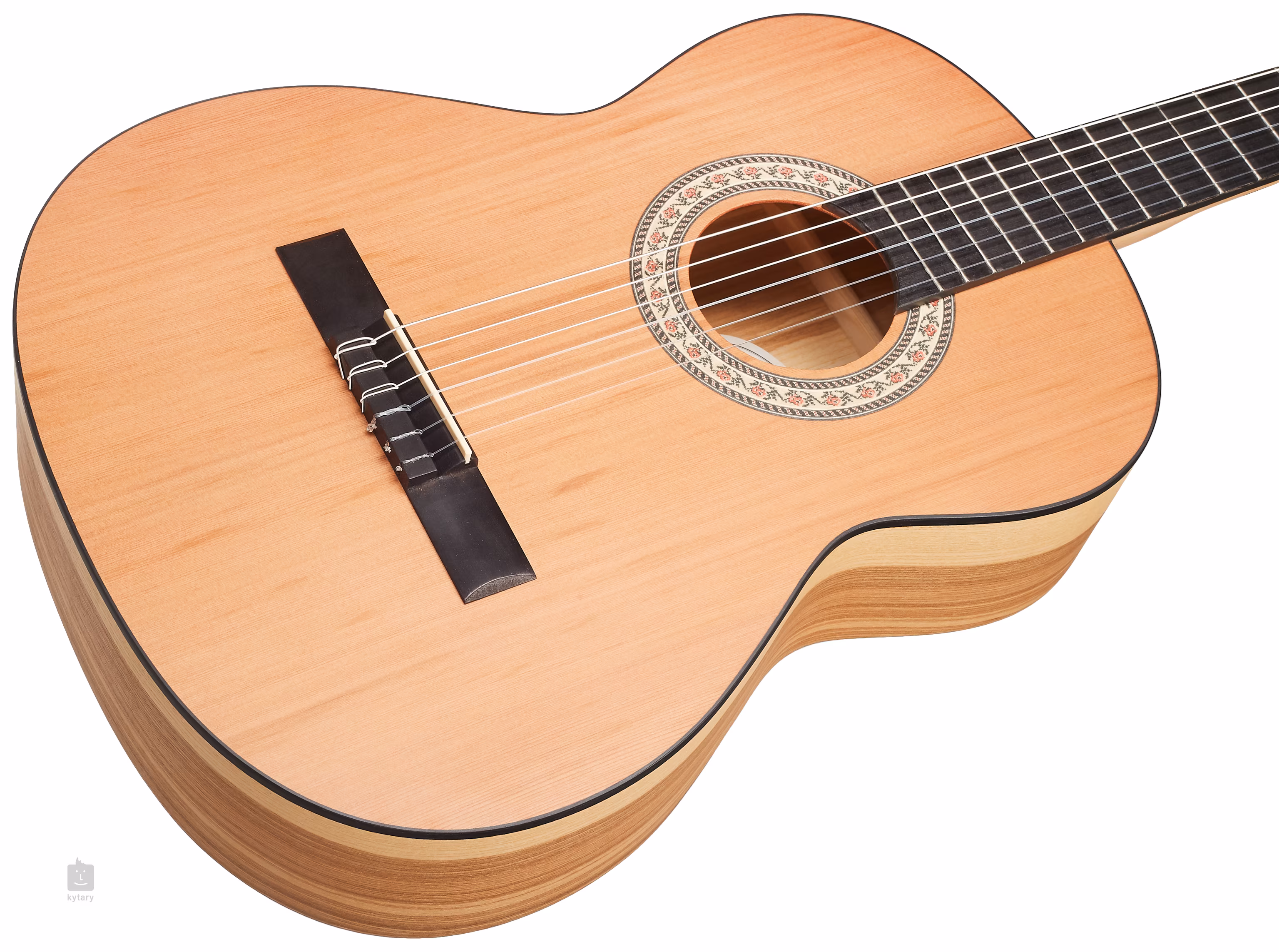 Přední deska kytary je vyrobena z masivního cedru, zadní deska a luby jsou zhotoveny z překližovaného jasanového dřeva. K bukovému krku je přilepen též bukový hmatník osazený osmnácti pražci. Struny jsou uchyceny přes sedlový a nultý plastový pražec v klasických otevřených ladících mechanikách a v bukové kobylce. Dobré řemeslné zpracování potrhuje fíbrová obvodová výložka a dřevěná vykládaná rozeta. Na kytaře jsou nataženy nylonové struny značky Savarez.