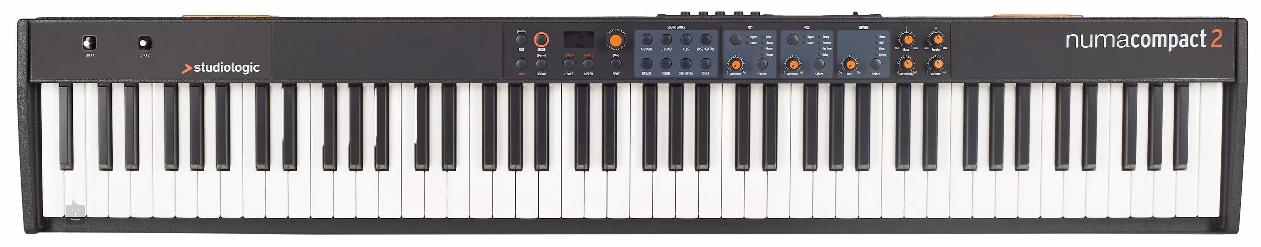 Studiologic Numa Compact 2 je lehké a jednoduché stage piano, které ocení především začátečníci a mírně pokročilí hráči. Nabízí 88 zvuků akustických i elektrických pian a keyboradů, kytar, bas, varhan, syntezátorů, smyčců a dalších, efektovou jednotku, polyfonii 128 hlasů nebo vlastní ozvučení.