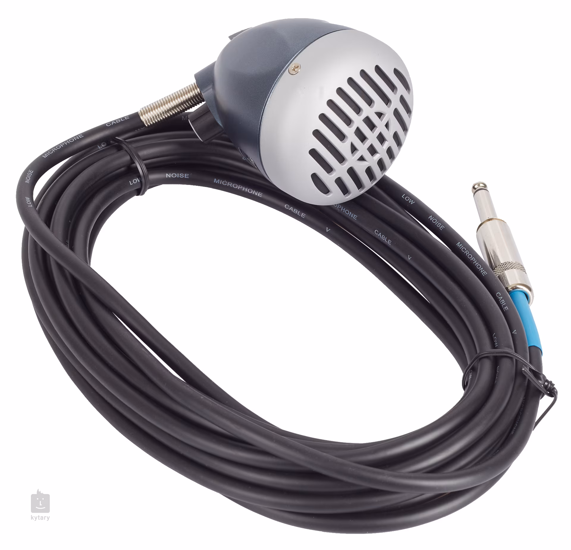 D112 je dynamický mikrofon, designován speciálně pro bluesovou harmoniku. Jeho frekvence jsou přizpůsobeny tak, aby váš nástroj v kapele krásně vynikl. Na spodní straně najdete potenciometr pro nastavení optimální hlasitosti, kabel disponuje 6,3 mm TS Jack konektorem, který můžete zapojit přímo do kytarových zesilovačů nebo jiných zařízení s vysokým odporem.