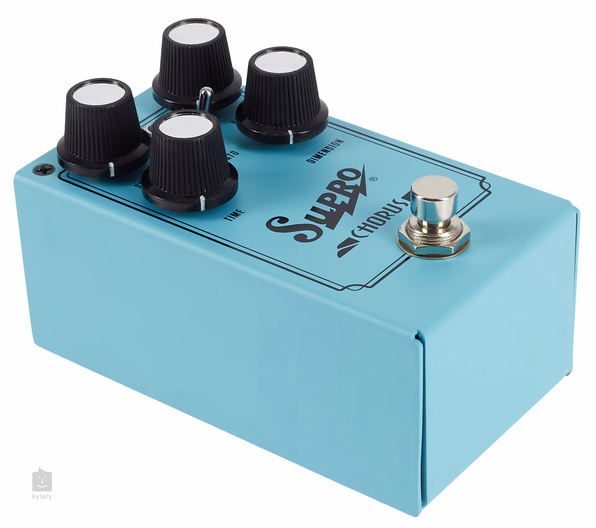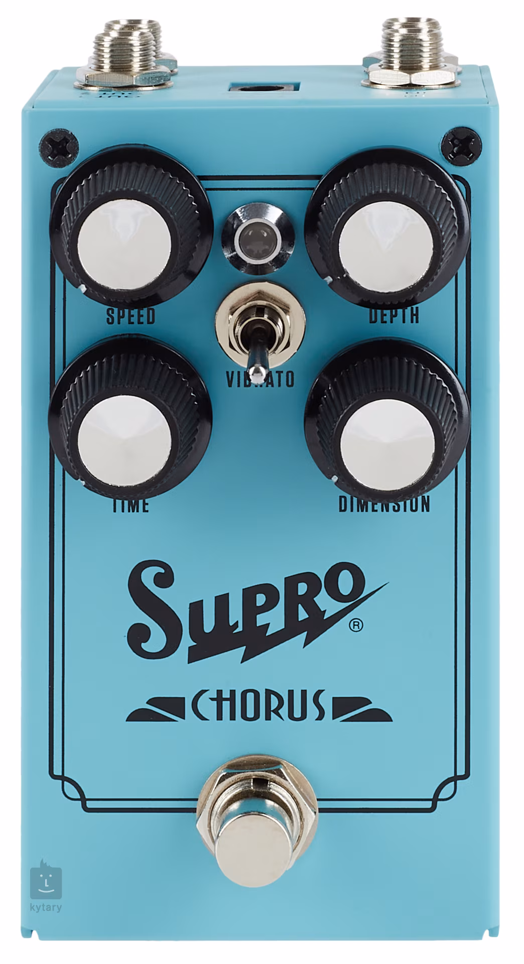 Supro Chorus je plně analogový stereo chorus pedál, který používá MN3007 BBD IC čipy pro dosažení naprosto luxusního prostorového modulačního efektu chorus. Klasické ovladače Rate a Speed určující rychlost a intenzitu efektové modulace doplňují potenciometry Time (mění delay time obou chorus kanálů v opačném směru) a Dimension (směšuje oba chorus kanály do jednoho). Na krabičce tak nastavíte jak klasické decentnější tóny chorus efektu, tak i bohaté plné zvuky zdvojeného BBD chorus efektu. Přepínačem Vibrato lze navíc poslat zvuk do sfér pitch modulated vibrata.