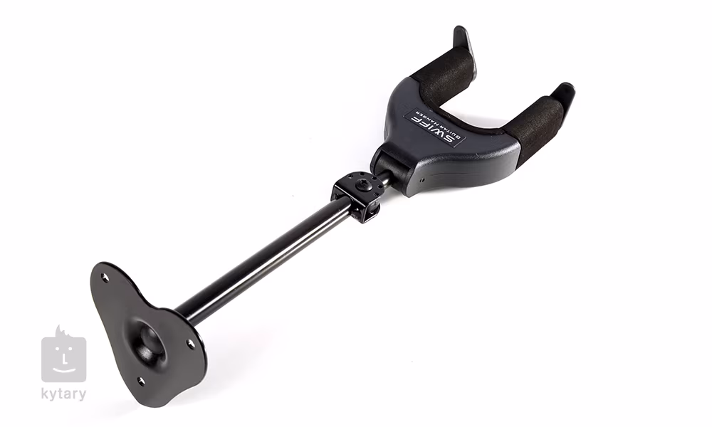 Kytarový věšák Swiff U2-B nabízí perfektní řešení pro zavěšení vašeho nástroje. Díky prodloužené tyči a možnosti natočit držák do více směrů můžete ušetřit místo v případě zavěšení více nástrojů vedle sebe. Věšák disponuje ochrannými zámky, které se při vložení nástroje automaticky zavřou a zabrání tak jeho pádu a případnému poškození. Otočná hlava věšáku se přizpůsobí různorodým tvarům kytarových hlav i jiným nástrojům, takže spolehlivě udrží akustiku, klasiku, elektriku, baskytaru, mandolínu nebo například banjo. Všechny části, které se dotýkají nástroje, jsou vystlané měkkou pěnou, takže se nemusíte obávat poškrábání.