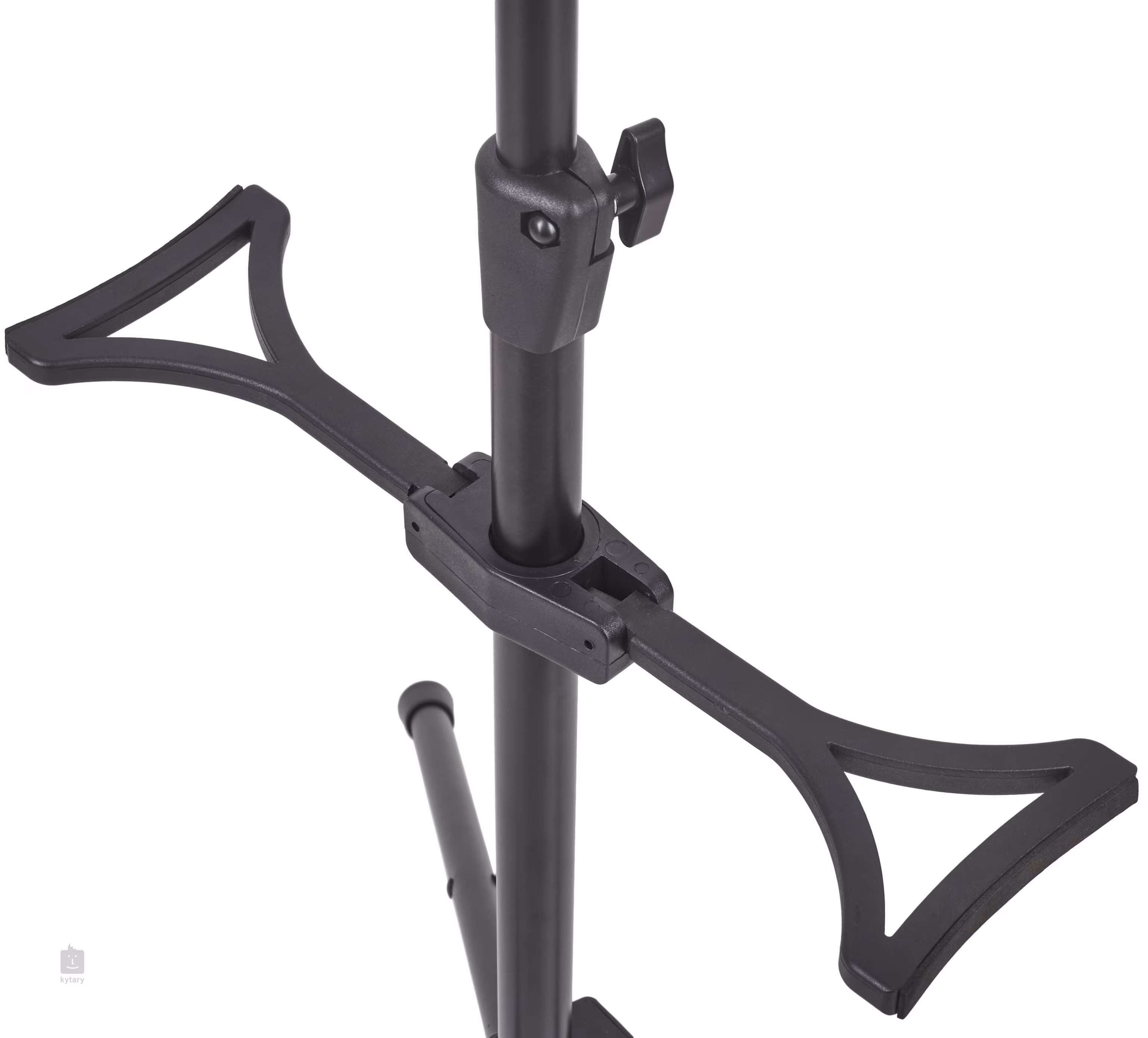 Kytarový stojan Swiff U4-C je oboustranný stojan na trojnožce, který vám umožní zavěsit dva nástroje zároveň. Je skládací a stabilní, takže díky němu budou vaše kytary vždy po ruce a v bezpečí. Obě hlavy stojanu disponují ochrannými zámky, které se při vložení kytary automaticky zavřou a zabrání tak jejímu pádu a případnému poškození. Zároveň jsou vystlány měkkou pěnou, takže se nemusíte obávat poškrábání. Ve spodní části se kytary opírají o gumové nástavce. Stojan je vhodný pro akustické i elektrické kytary.