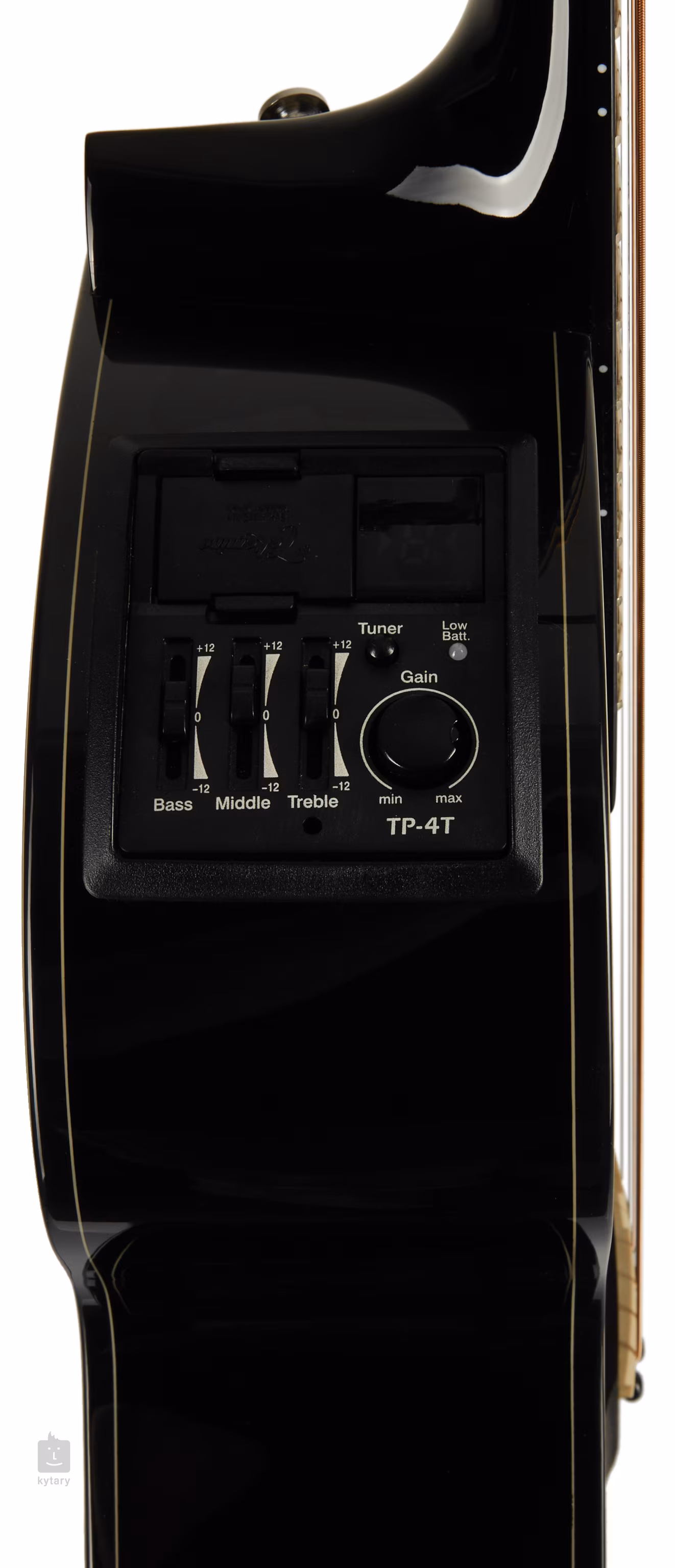 Snadnou možnost ozvučení nabízí elektronika Takamine se zabudovanou ladičkou, třípásmovým ekvalizérem a ovladačem Gain.
