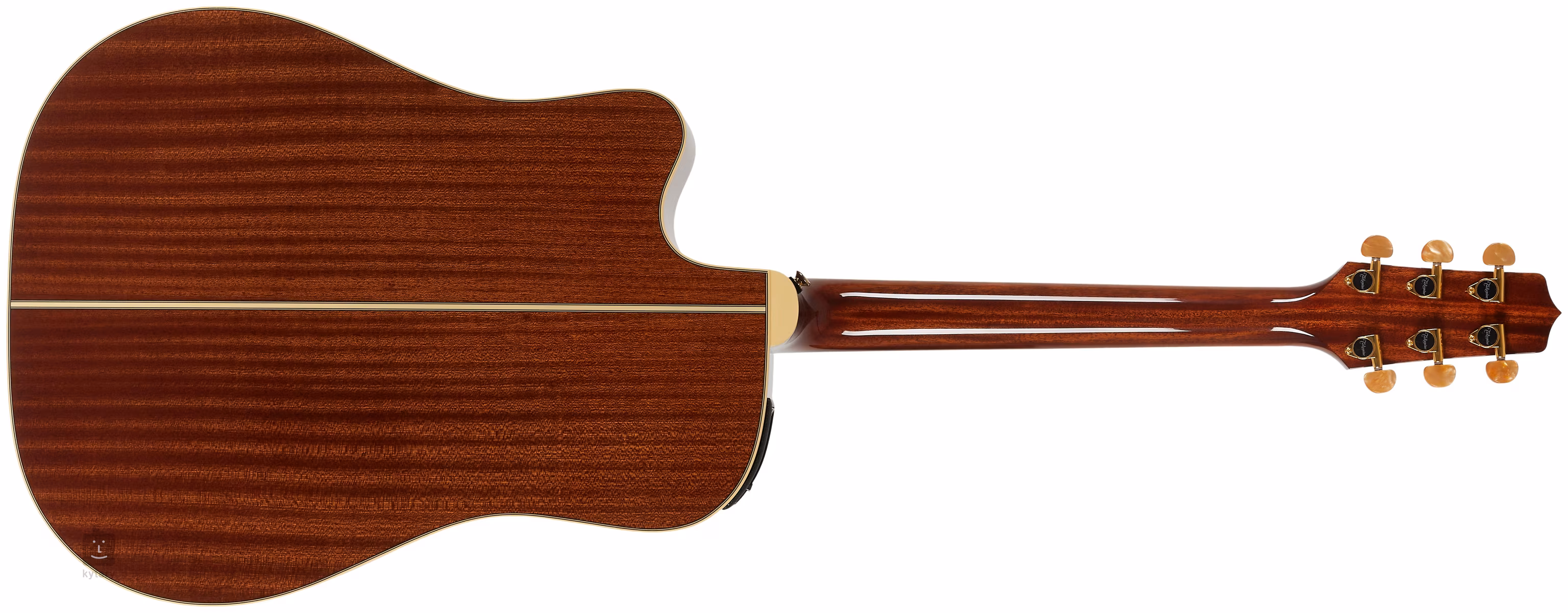 Takamine P4DC je elektroakustická kytara s populárním rezonantním tělem typu Dreadnought. Tělo nástroje je složeno z přední desky z masivního smrku, lubů ze sapele a zadní desky z masivního sapele. Skvělou projekci a vyváženost zvuku kytary podporuje tradiční X žebrování topu. Užší jemně asymetrický mahagonový krk s C profilem vám ideálně padne do ruky, spolu s palisandrovým hmatníkem a elegantním spodním výřezem těla (Venetian cutaway) zaručují vysoký herní komfort bez hrozby brzké únavy kvůli náročnému dohmatu.