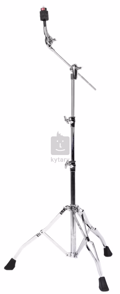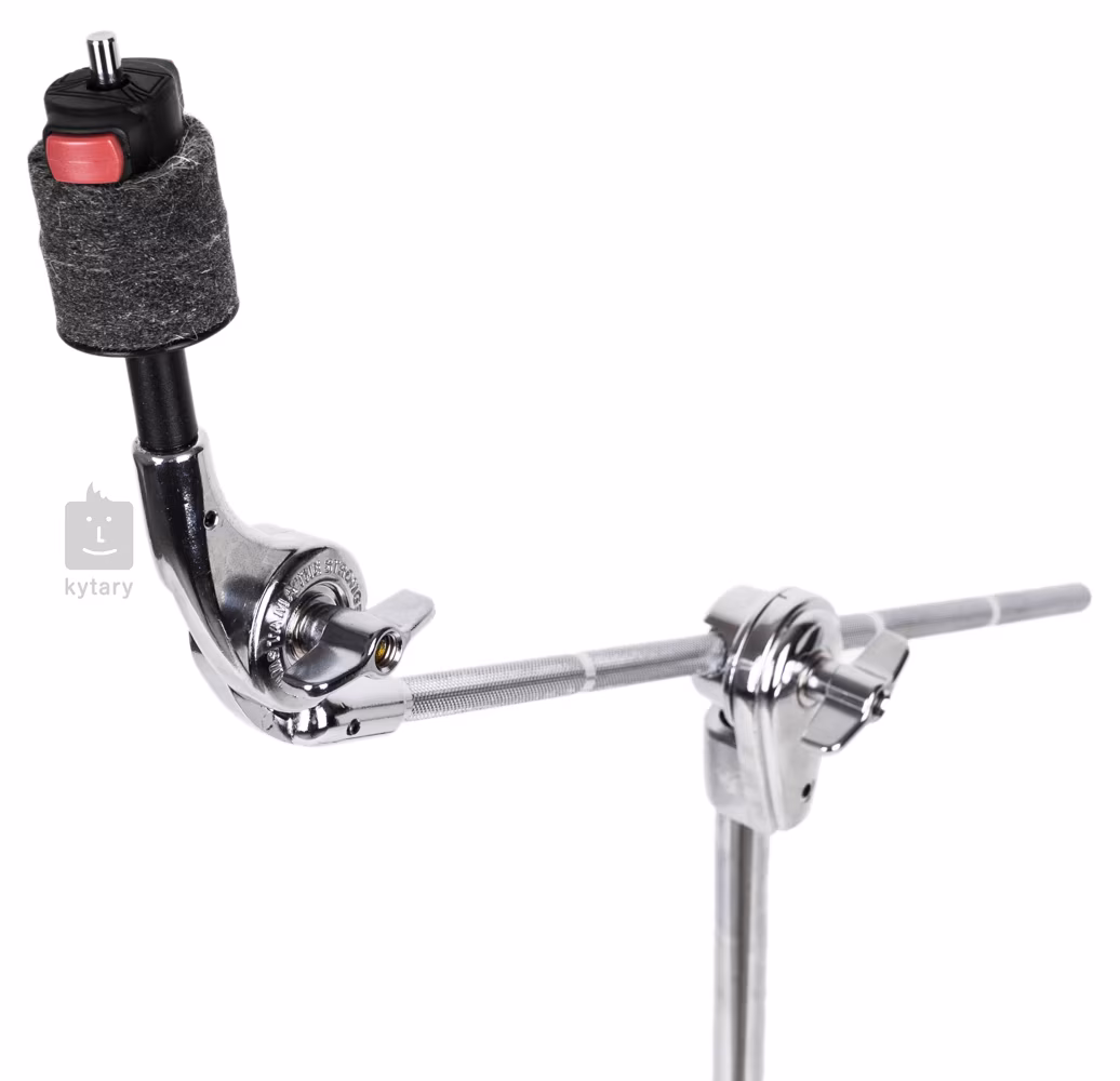 Činelový stojan s šibenicí je osazený dvěma zpevněnými klouby pro individuální nastavení, rychloupínacími maticemi a oboustranně použitelným držákem, který současně chrání střed činelu před poškozením. Zasunutím horního ramene do stojací trubice stojan jednoduše předěláte na rovný. Délka ramene je 40 cm. Stabilitu a minimální obsazení prostoru v rámci celé bicí sestavy zaručuje nová konstrukce dvojitých noh.