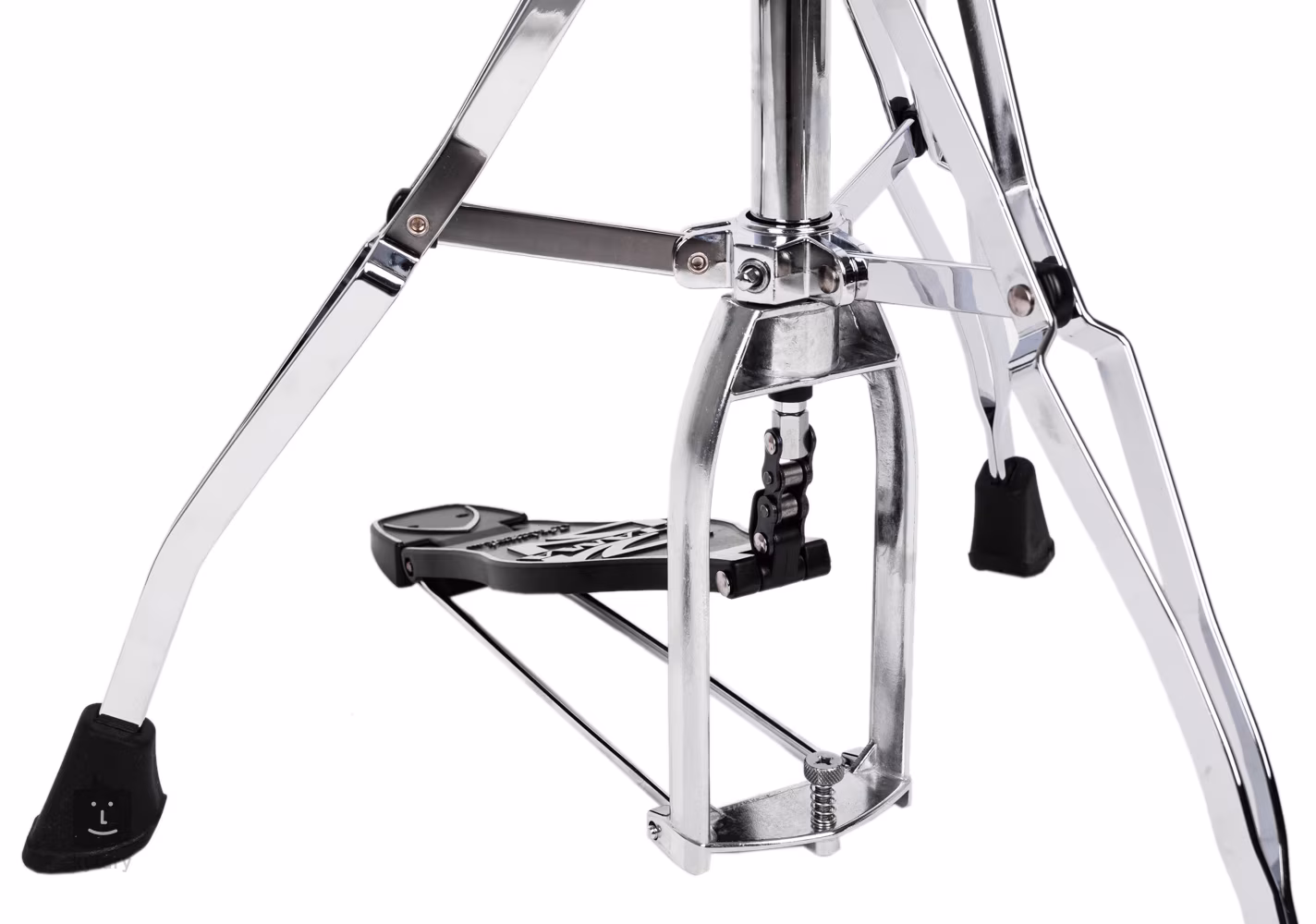 Hi-hat stojan řady Stage Master s pevným převodem má konstrukci umožňující rotaci pedálu v rámci trojnožky a uživatel tak má maximální volnost při rozestavění bicí sestavy. Paměťová objímka spolehlivě stabilizuje nastavenou výšku a nylonová izolace na konci tyče eliminuje nežádoucí kontakt kovu na kov. Stabilitu a minimální obsazení prostoru v rámci celé bicí sestavy zajišťuje nová konstrukce dvojitých noh.