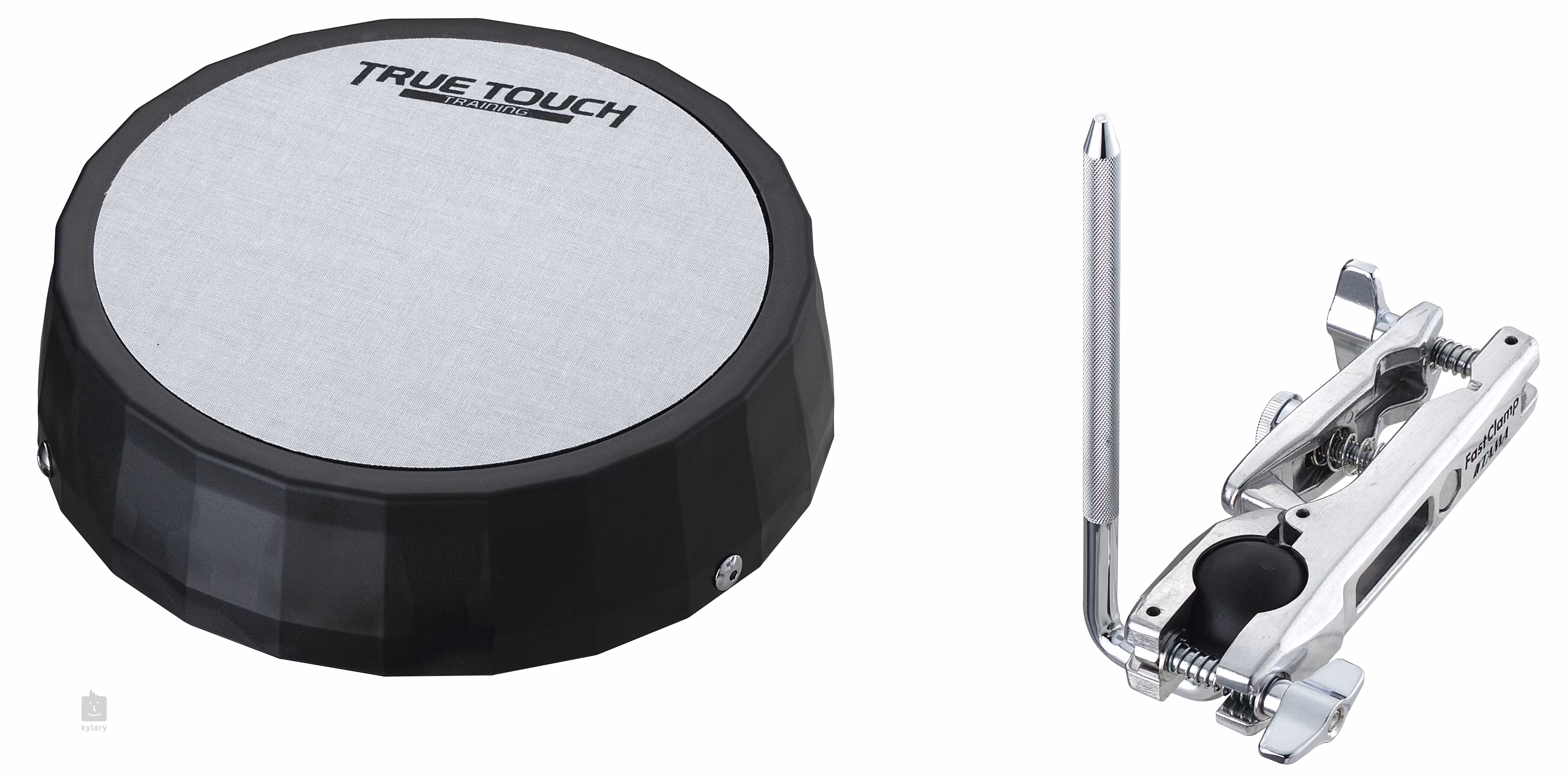 Pro maximální realističnost je snare bubínek laditelný a vybavený zvýšenou obručí, takže trénovat můžete také údery na hrany, různé typy akcentů a další techniky. Pad basového bubnu je pak vybaven systémem pro nastavování úhlu sklonu, což mu zaručí perfektní stabilitu a pevné spojení s pedálem. Pro upevnění jednotlivých bubnů najdete v balení oblíbené rychloupínací svorky Tama, díky kterým bude skládání a rozkládání soupravy rychlé a jednoduché.