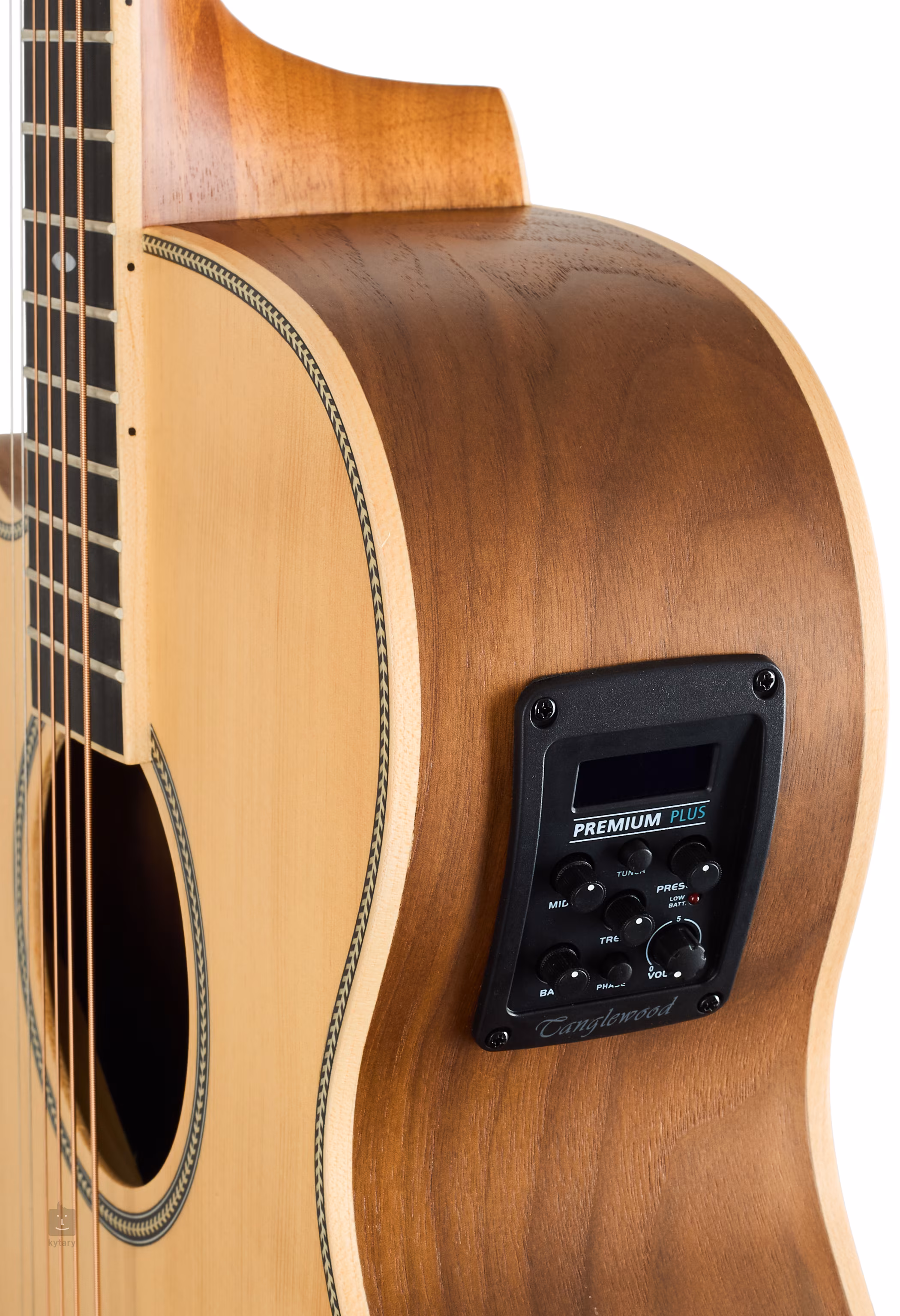 Možnost ozvučení nabízí firemní preamp TW Premium Plus s čtyřpásmovým ekvalizérem, funkcí Phase a integrovanou ladičkou. Struny jsou uchyceny v ladicích die-cast mechanikách a kobylce z kompozitu. Pěkné zpracování podtrhuje oboustranná javorová lemovka těla, rozeta a výložka topu se vzorem rybí kosti (Herringbone) a ořechová dýha na hlavici ozdobená firemním logem.