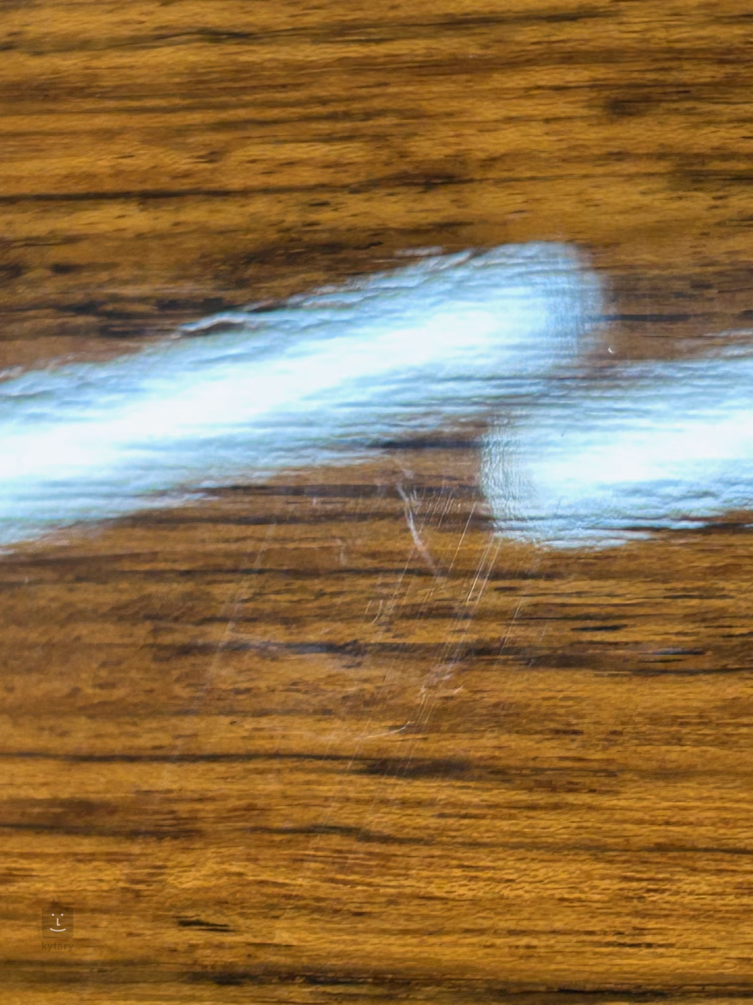 Poškozený lak na hraně lubu a spodní desky (viz foto).