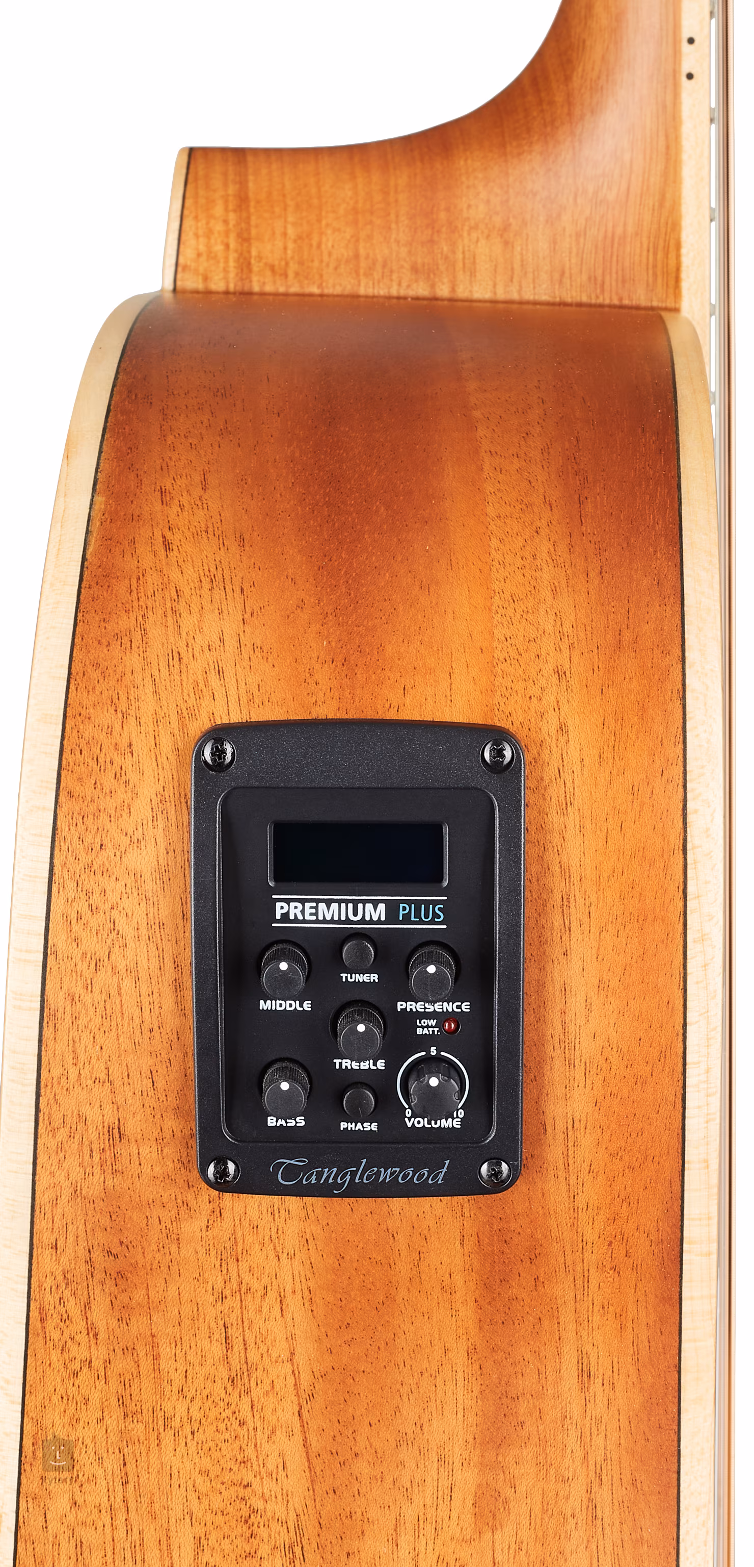 Možnost ozvučení nabízí firemní preamp TW Premium Plus s čtyřpásmovým ekvalizérem, funkcí Phase a integrovanou ladičkou. Struny jsou přes nultý a sedlový pražec z materiálu NuBone uchyceny v chromovaných Die-Cast mechanikách a kobylce z kompozitu. Pěkné zpracování podtrhuje oboustranná javorová lemovka těla doplněná černobílými linkami a javorová rozeta.