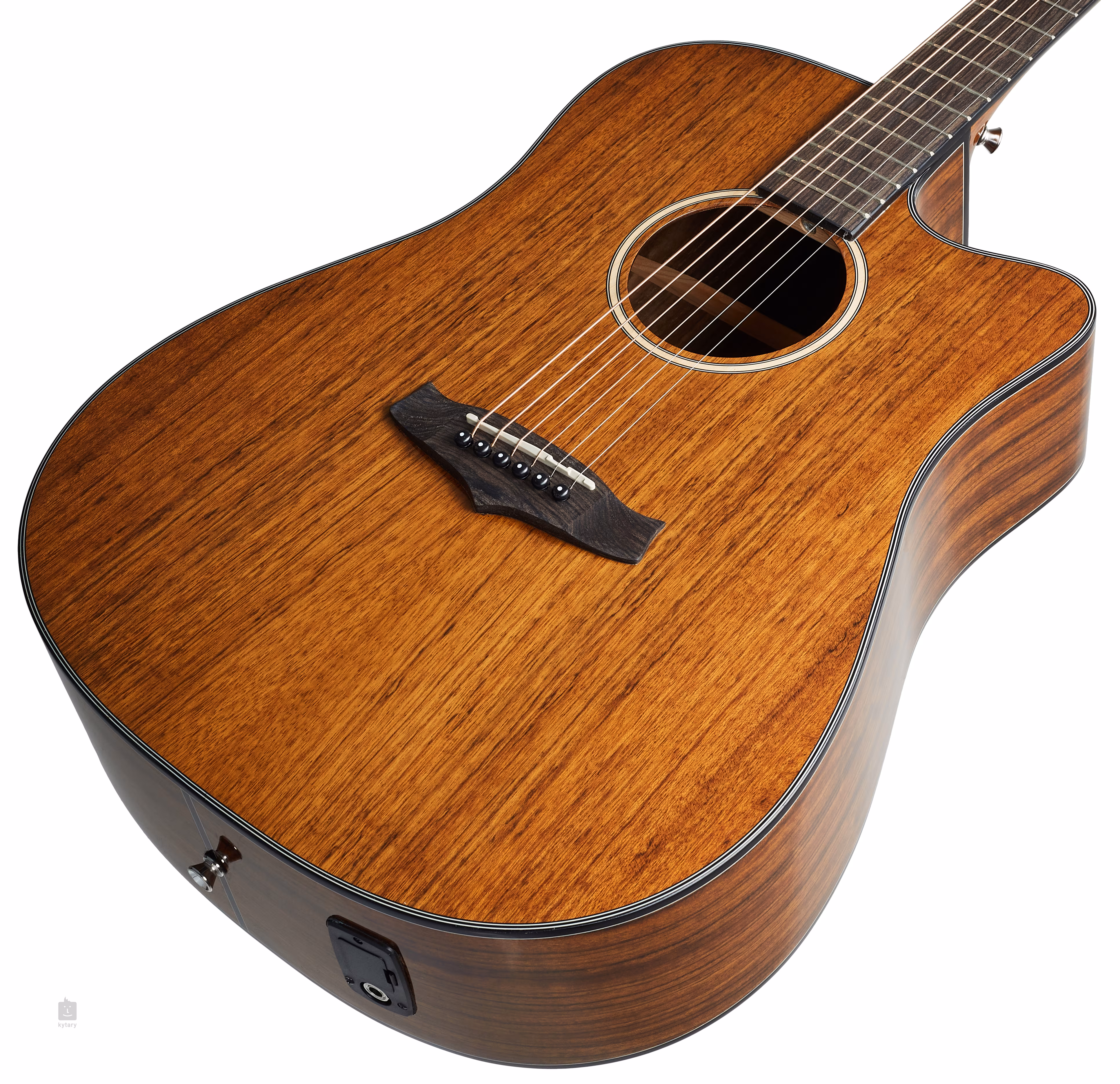 TW28CE X OV je elektroakustická kytara typu Dreadnought z řady Evolution Exotic s tělem zhotoveným z překližovaného ovangkolu, jehož kresba poskytuje kytaře luxusní vzhled. Plochu hmatníku z moderního kompozitního materiálu rozděluje dvacet pražců a bílé polohové tečky. Struny jsou uchyceny v chromovaných ladících mechanikách a kobylce z kompozitu.