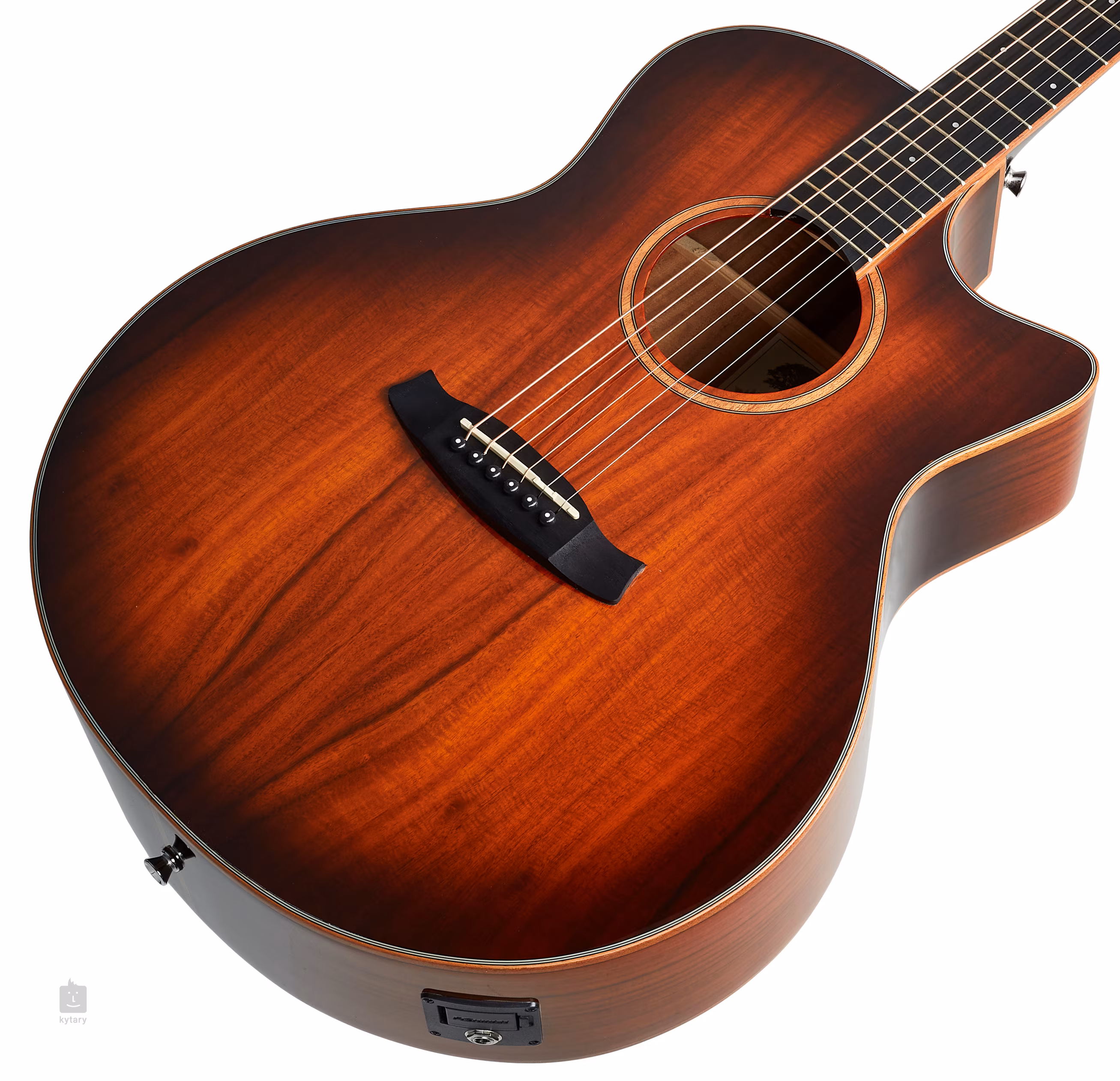 TW4 E VC KOA je elektroakustická kytara v populárním tvaru těla Grand Auditorium, tj. nástroj univerzálně vhodný ke hře trsátkem i prstovou technikou. Tělo kytary je zhotoveno z havajského koa (přední deska z masivu), které nástroji poskytuje luxusní vzhled i kvalitní zvuk. Plochu hmatníku z kompozitního materiálu Eboncore v dekoru ebenu rozděluje jednadvacet pražců. Dohmat na vyšších polohách hmatníku usnadňuje praktický spodní výřez těla.