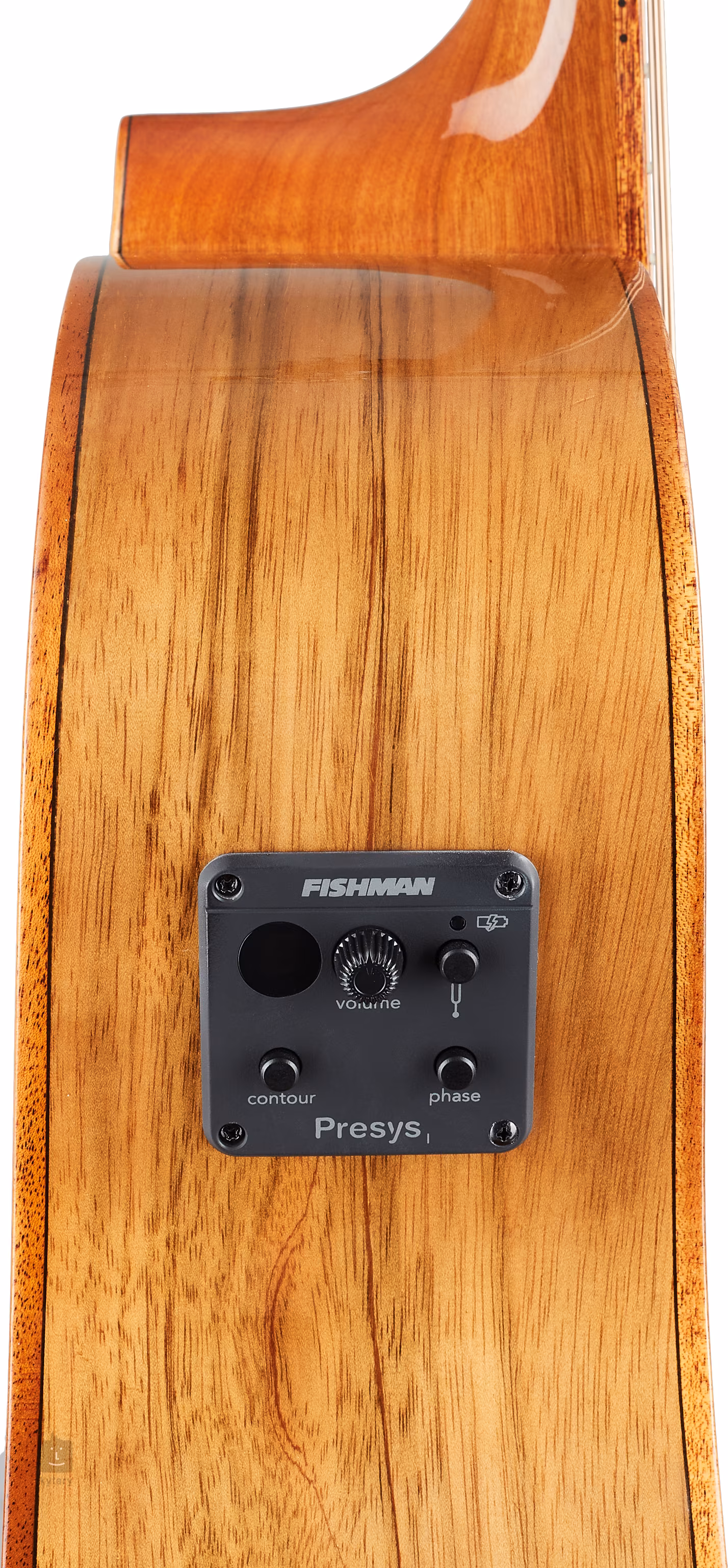 Možnost ozvučení nabízí preamp Fishman Presys s integrovanou ladičkou. Struny jsou uchyceny v chromovaných Die-Cast mechanikách značky Grover a kobylce z kompozitu. Pěkné zpracování podtrhuje mahagonová lemovka a rozeta.
