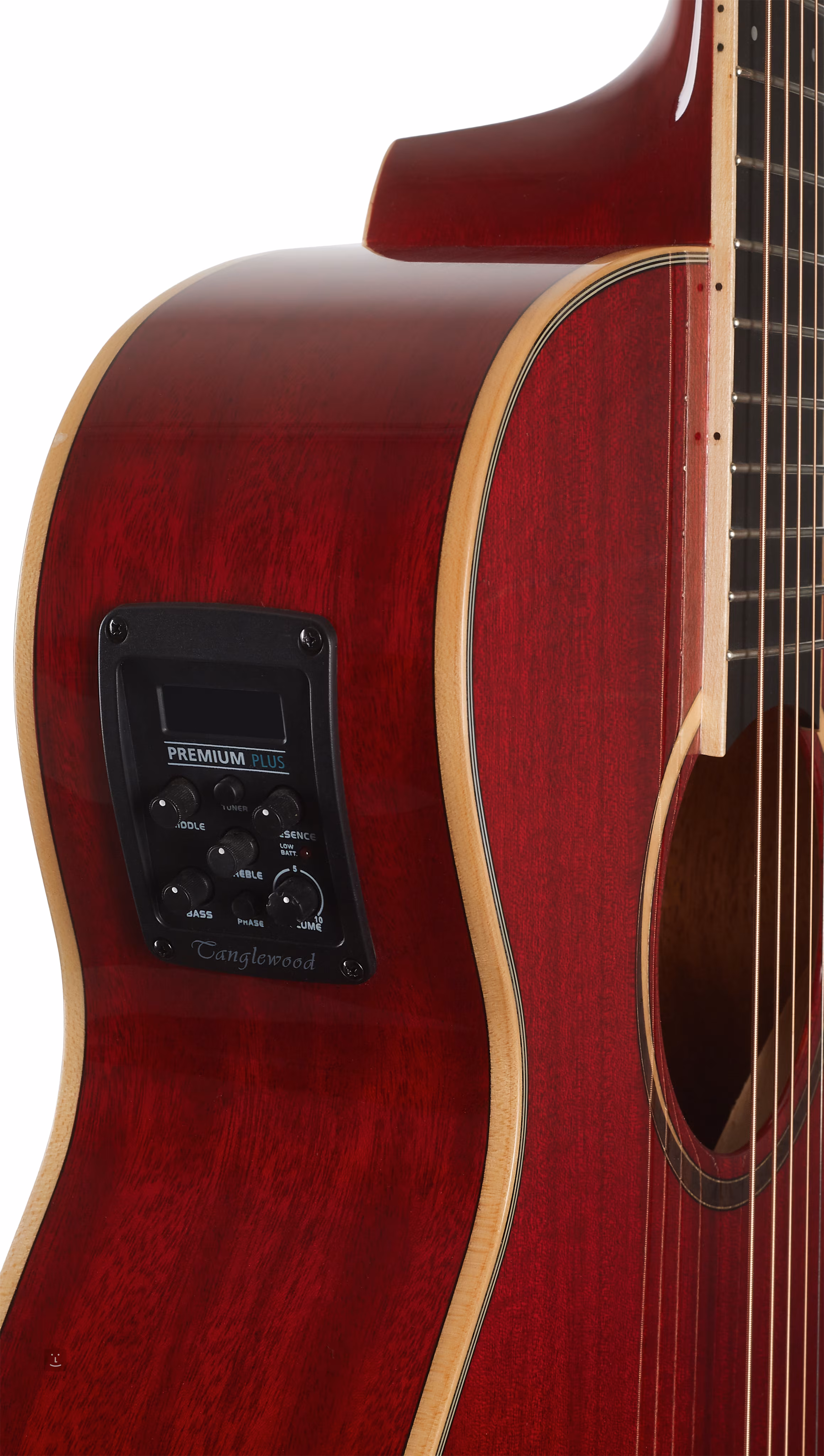 Možnost ozvučení nabízí firemní preamp TW Premium Plus s čtyřpásmovým ekvalizérem, funkcí Phase a integrovanou ladičkou. Struny jsou přes nultý a sedlový pražec z materiálu NuBone uchyceny v chromovaných die-cast mechanikách a kobylce z kompozitu. Pěkné zpracování podtrhuje oboustranná javorová lemovka těla, javorová rozeta, dekorace zadní desky a barevná úprava přední desky v provedení Red Gloss.