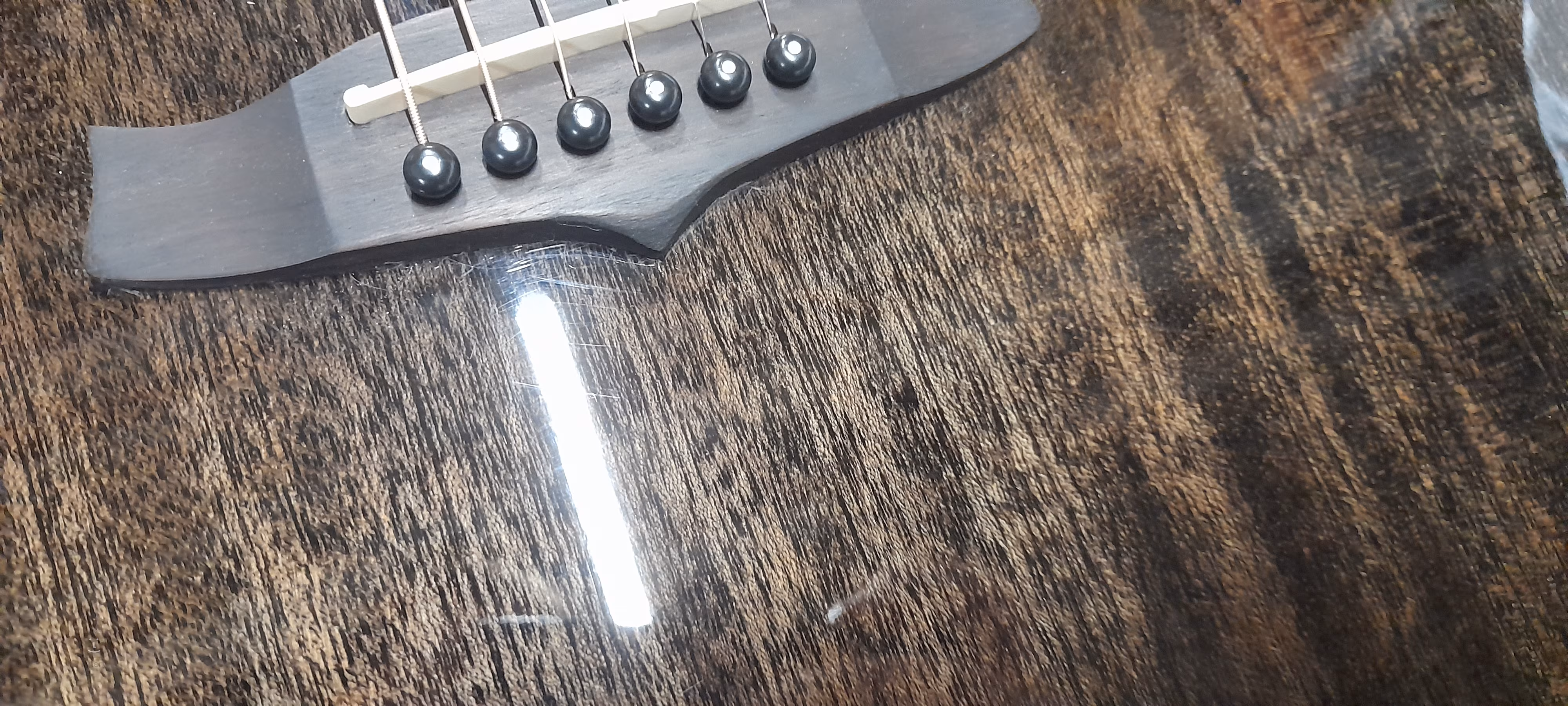 Možnost ozvučení nabízí firemní preamp TW Premium Plus s čtyřpásmovým ekvalizérem, funkcí Phase a integrovanou ladičkou. Struny jsou přes nultý a sedlový pražec z materiálu NuBone uchyceny v chromovaných die-cast mechanikách a kobylce z kompozitu. Pěkné zpracování podtrhuje javorová lemovka těla a rozeta, středový proužek na zadní desce, perleťové poziční tečky (MoP) a finiš přední desky Black Shadow Gloss.