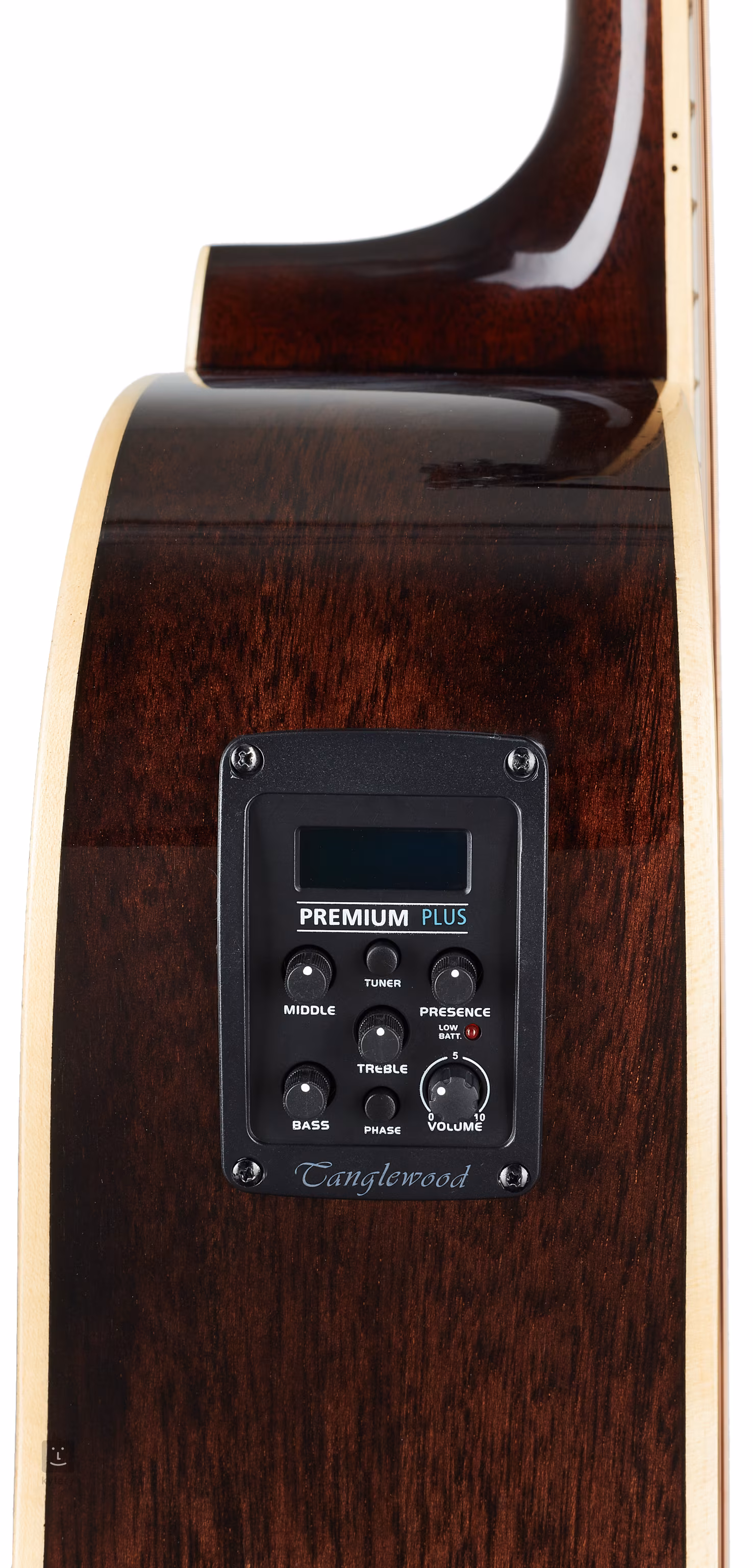 Možnost ozvučení nabízí firemní preamp TW Premium Plus s čtyřpásmovým ekvalizérem, funkcí Phase a integrovanou ladičkou. Struny jsou přes nultý a sedlový pražec z materiálu NuBone uchyceny v chromovaných Die-Cast mechanikách značky Grover a kobylce z kompozitu. Pěkné zpracování podtrhuje oboustranná světlá lemovka těla a barevný finiš topu Antique Violin Burst Gloss.