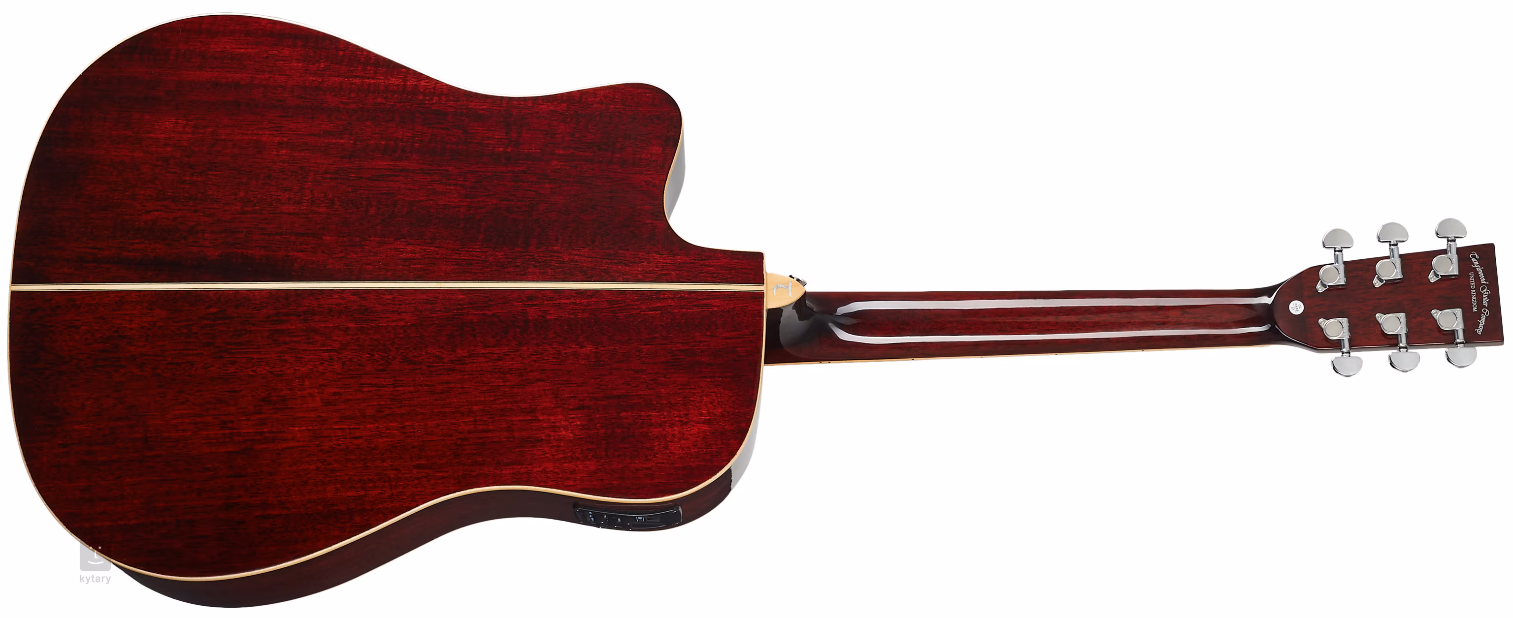 Možnost ozvučení nabízí elektronika B-Band M450T s čtyřpásmovým ekvalizérem a zabudovanou ladičkou. Struny jsou přes nultý a sedlový pražec z materiálu NuBone uchyceny v chromovaných Die-Cast mechanikách značky Grover a kobylce z kompozitu. Pěkné zpracování podtrhuje oboustranná světlá lemovka těla a barevný finiš topu Red Gloss.