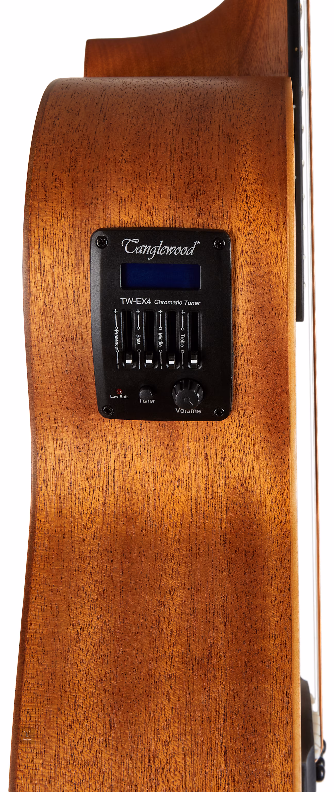 Možnost ozvučení nabízí firemní preamp TW EX-4 s čtyřpásmovým ekvalizérem a integrovanou ladičkou. Struny jsou uchyceny v chromovaných Die-Cast mechanikách a kobylce z černého ořechu.