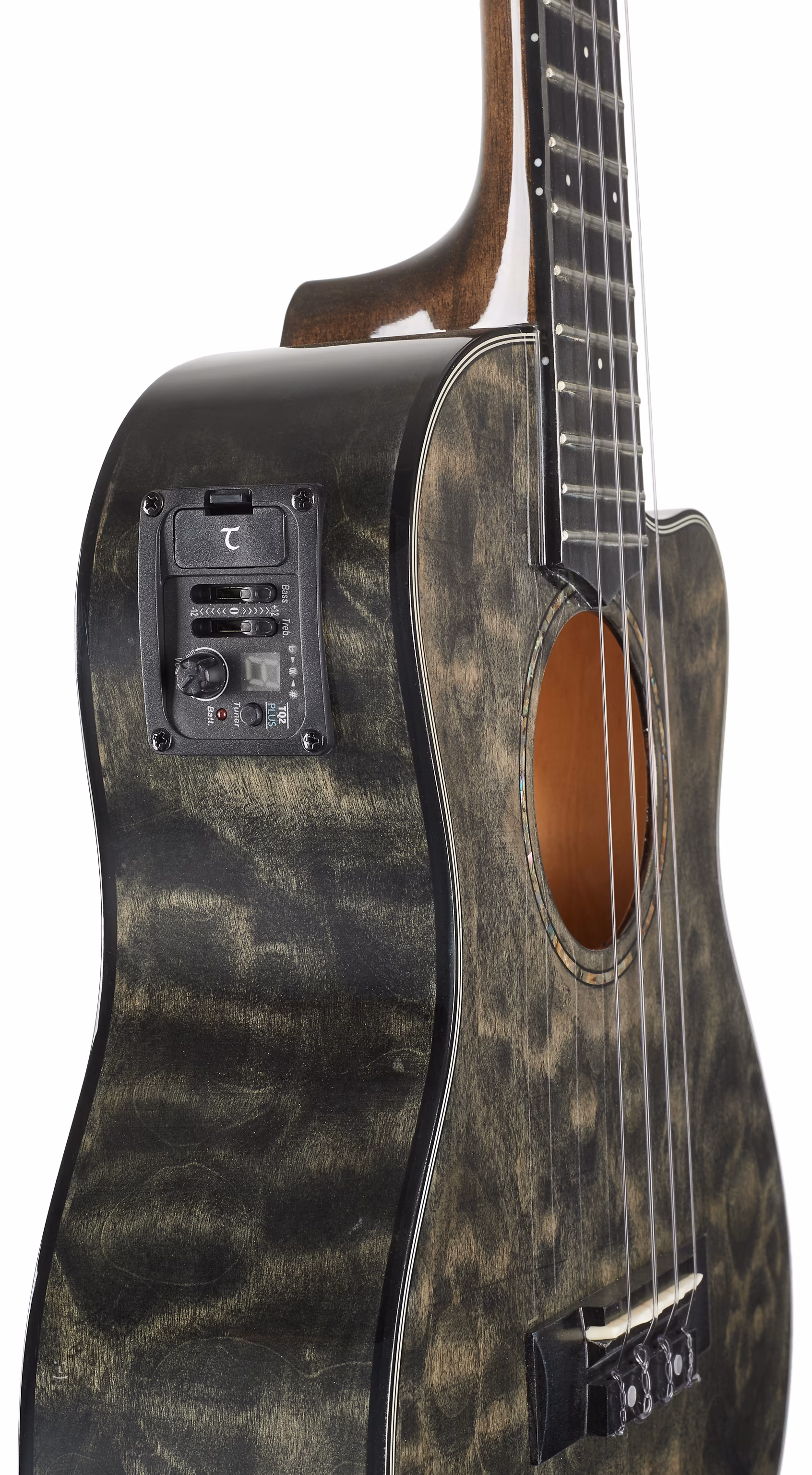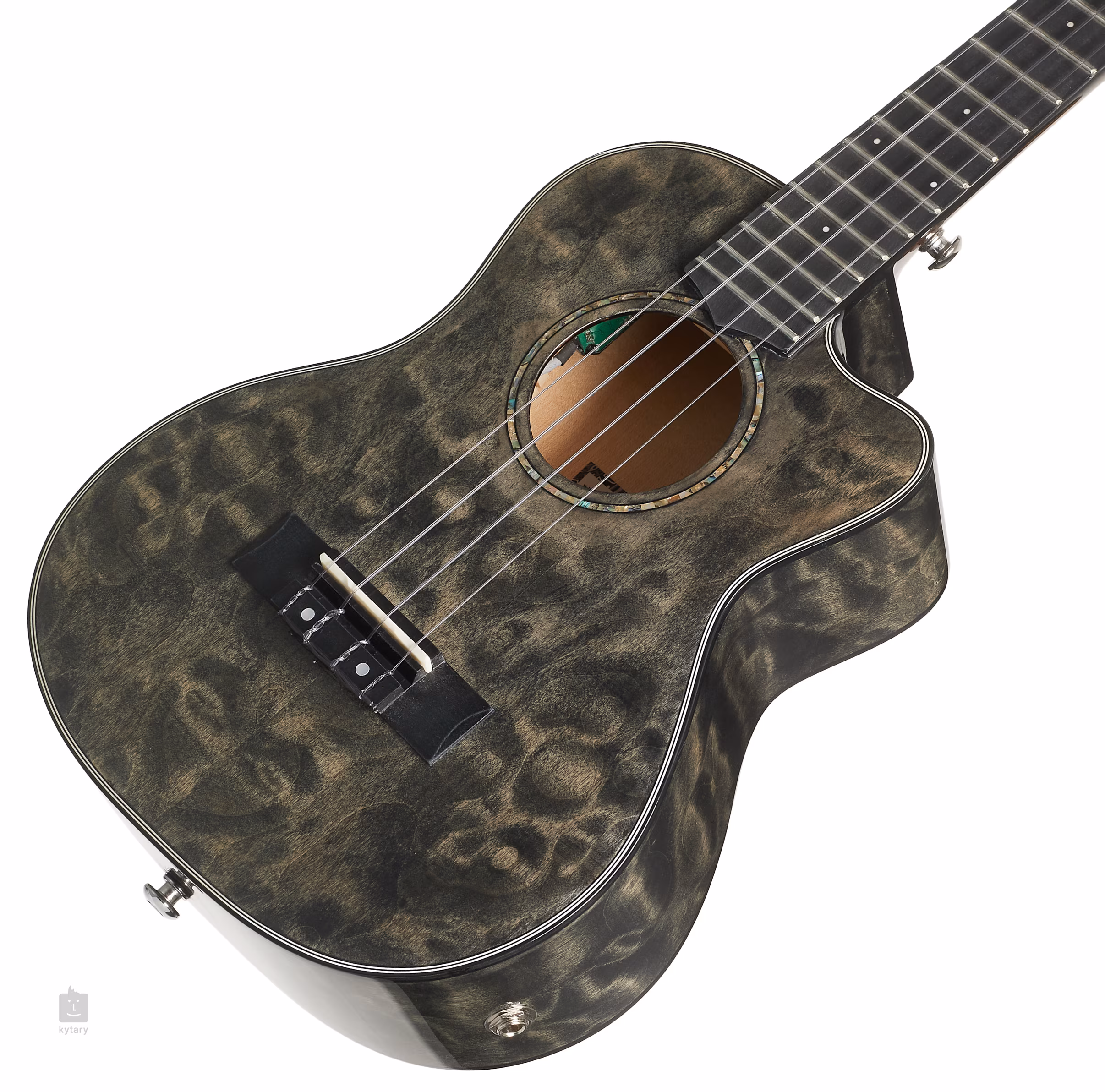TWT 28 E je elektroakustické ukulele značky Tanglewood v tenorové velikosti. Tělo nástroje je zhotoveno z vizuálně atraktivního vrstveného obláčkového javoru. Kresbu dřeva umocňuje zvolená barevná úprava Obsidian Black Gloss. Pro hmatník a kobylku nástroje padla volba na moderní kompozitní materiál.