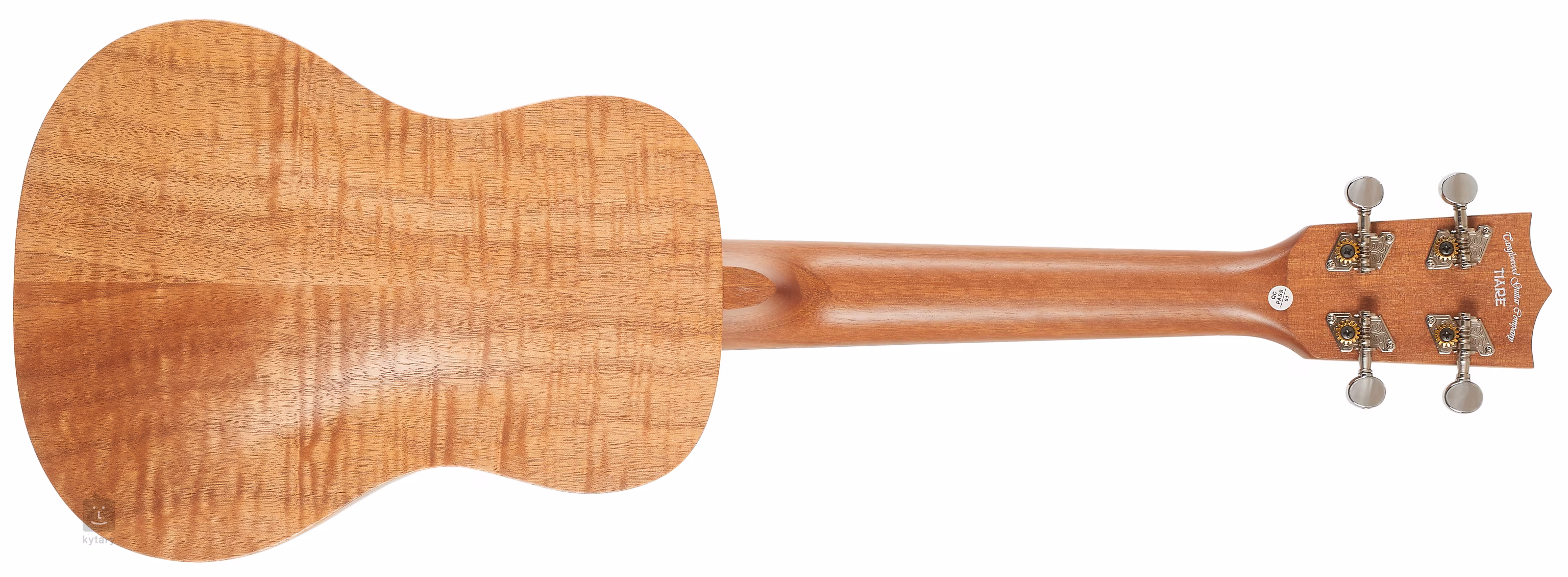 Struny jsou uchyceny v chromovaných ladicích mechanikách kytarového typu a kobylce z kompozitu. Pěkné zpracování podtrhuje rozeta složená z javorových a mahagonových prstenců. Ukulele je dodáváno v obalu (gig bag).