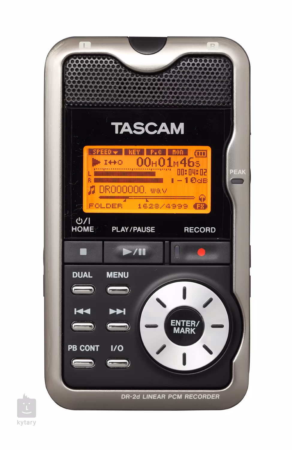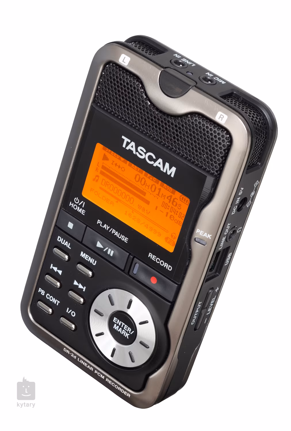 ASCAM's DR-2d Portable Digital Recorder brings high-resolution recording to a compact, affordable package. It offers up to 96kHz/24-bit WAV or MP3 recording to SD cards, and recordings can be transferred to computer through high-speed USB 2.0. A new dual recording feature records a copy of your audio at a lower level, so if the level suddenly jumps you have a backup instead of a distorted performance.