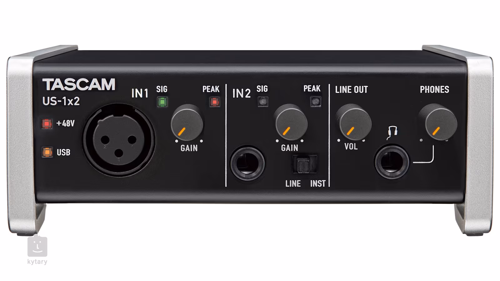 Tascam US-1x2 je nejmenší ze série zvukových karet US, sdílí však stejné srdce. Díky tomu jde o velmi kompaktí řešení pro domácí i mobilní nahrávání. Karta nabízí pouze jeden vstup, ten však disponuje kvalitním předzesilovačem Ultra-HDDA, který velmi čistě a se všemi detaily zachytí veškeré signály z vašeho mikrofonu. Kromě mikrofonního vstupu lze samozřejmě připojit i profesionální hardware pomocí linkového vstupu, nebo ten samý vstup po přepnutí využít pro přímé nahrávání elektrické kytary nebo baskytary.