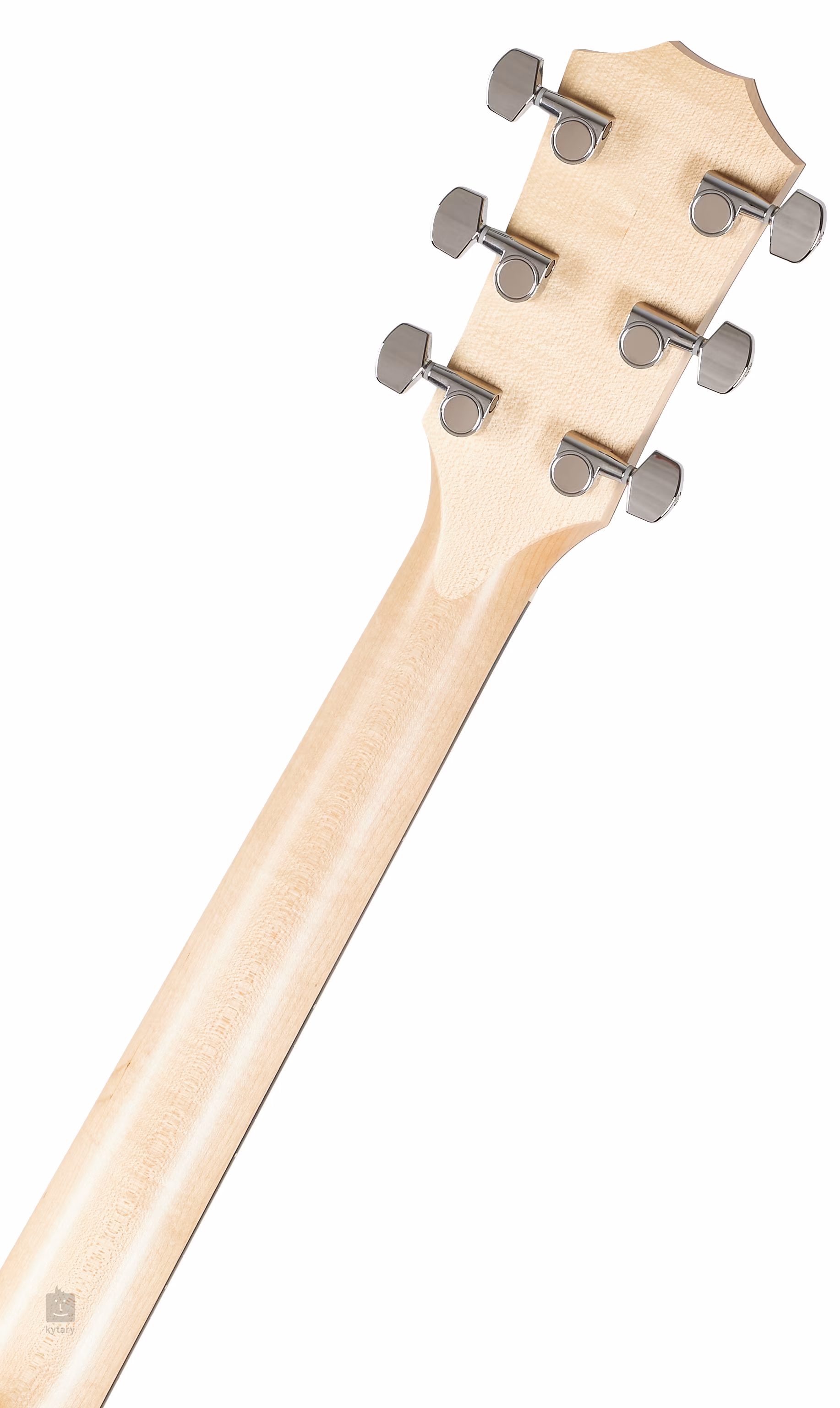Struny jsou přes sedlo z micarty a nultý pražec z materiálu TusQ uchyceny v chromovaných die-cast mechanikách značky Taylor. Vizuální dojem podtrhují tradiční prvky v podobě rozety složené ze tří prstenců, černé lemovky těla a praktického černého pickguardu.