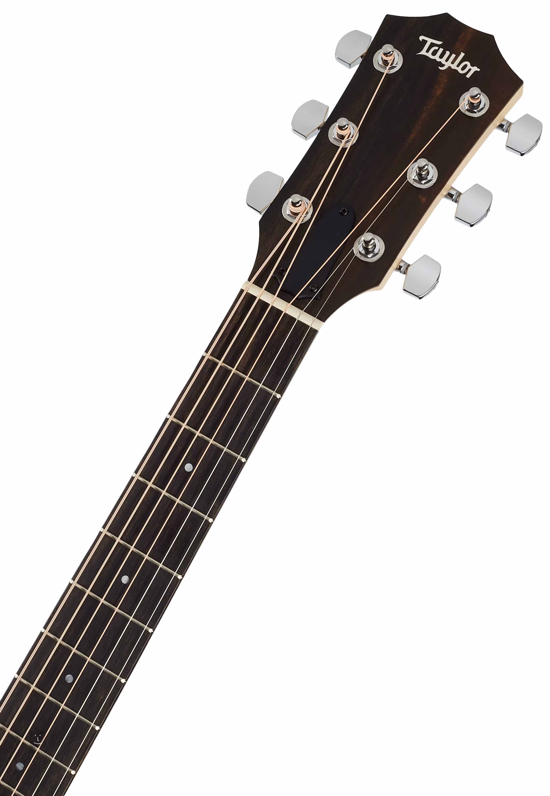 Struny jsou přes sedlo z micarty a nultý pražec z materiálu TusQ uchyceny v chromovaných die-cast mechanikách značky Taylor. Vizuální dojem podtrhují tradiční prvky v podobě rozety složené ze tří prstenců, černé lemovky těla a praktického černého pickguardu.