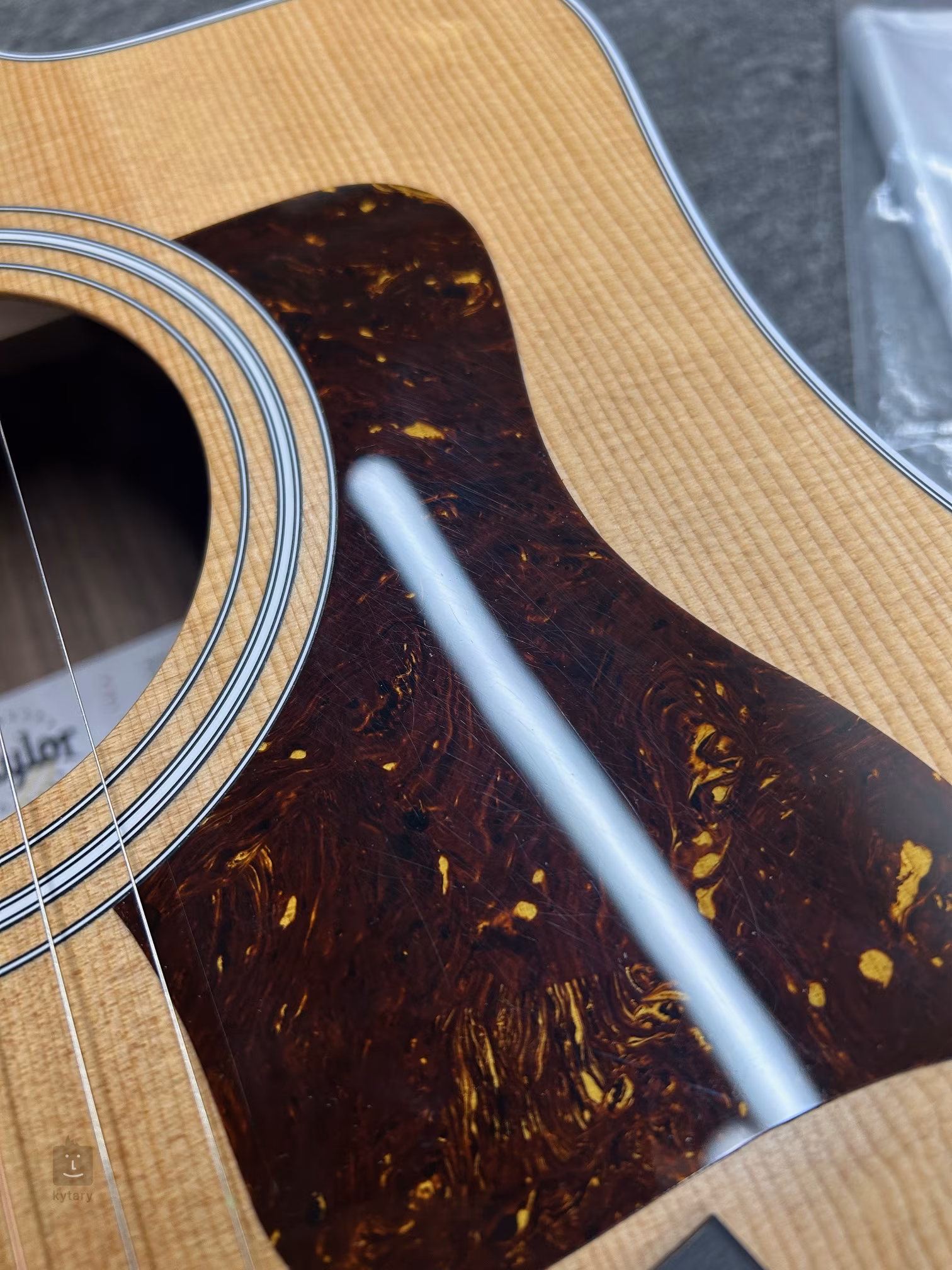 Kytara je osazena kvalitní firemní elektronikou. Taylor Expression System 2 používá tři speciálně navržené a individuálně kalibrované piezoelektrické snímače umístěné za kobylkou. Na rozdíl od konvenčních snímačů nesnímají pohyb desky nahoru a dolu, ale přirozené vibrace kobylkového sedla vpřed a vzad. Zvuk nástroje je tak mnohem přirozenější, barevnější a příjemnější a lépe reaguje na dynamiku vaší hry. Zároveň je díky novému preampu signál o 25 % silnější. Samozřejmostí je eliminace zpětné vazby a možnost nastavit hlasitost, basy a výšky.