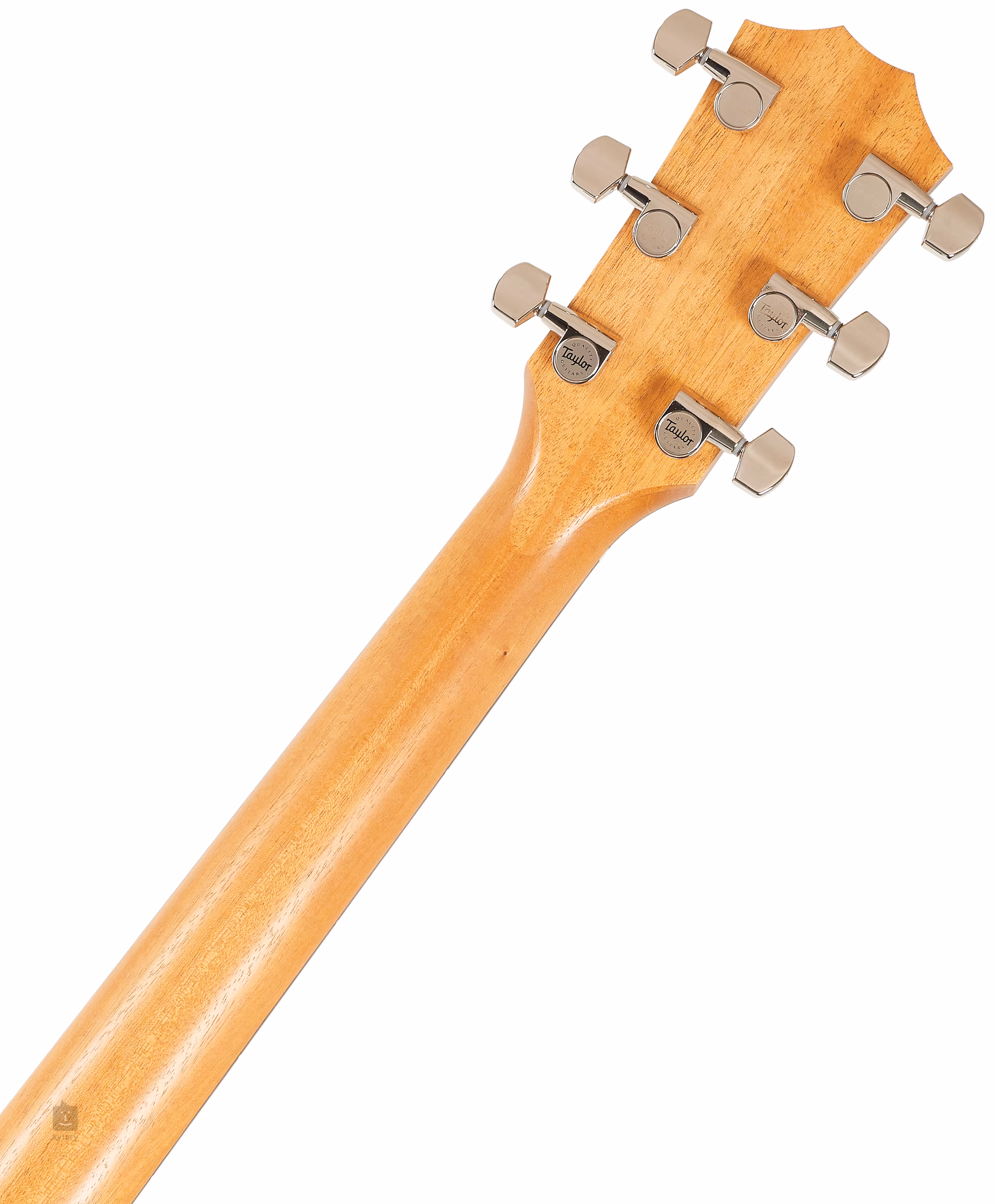 K mahagonovému krku je přilepen ebenový hmatník osazený dvaceti pražci. Dohmat na vyšších polohách hmatníku usnadňuje jemný zaoblený spodní výřez těla (Venetian Cutaway). Stabilitu ladění zaručuje uchycení strun přes nultý pražec z materiálu NuBone v ebenové kobylce a niklových mechanikách Taylor. Stylový vzhled nástroje podtrhují tradiční prvky v podobě černého pickguardu, černé obvodové lemovky těla a ebenové dýhy na hlavici kytary ozdobené logem Taylor.
