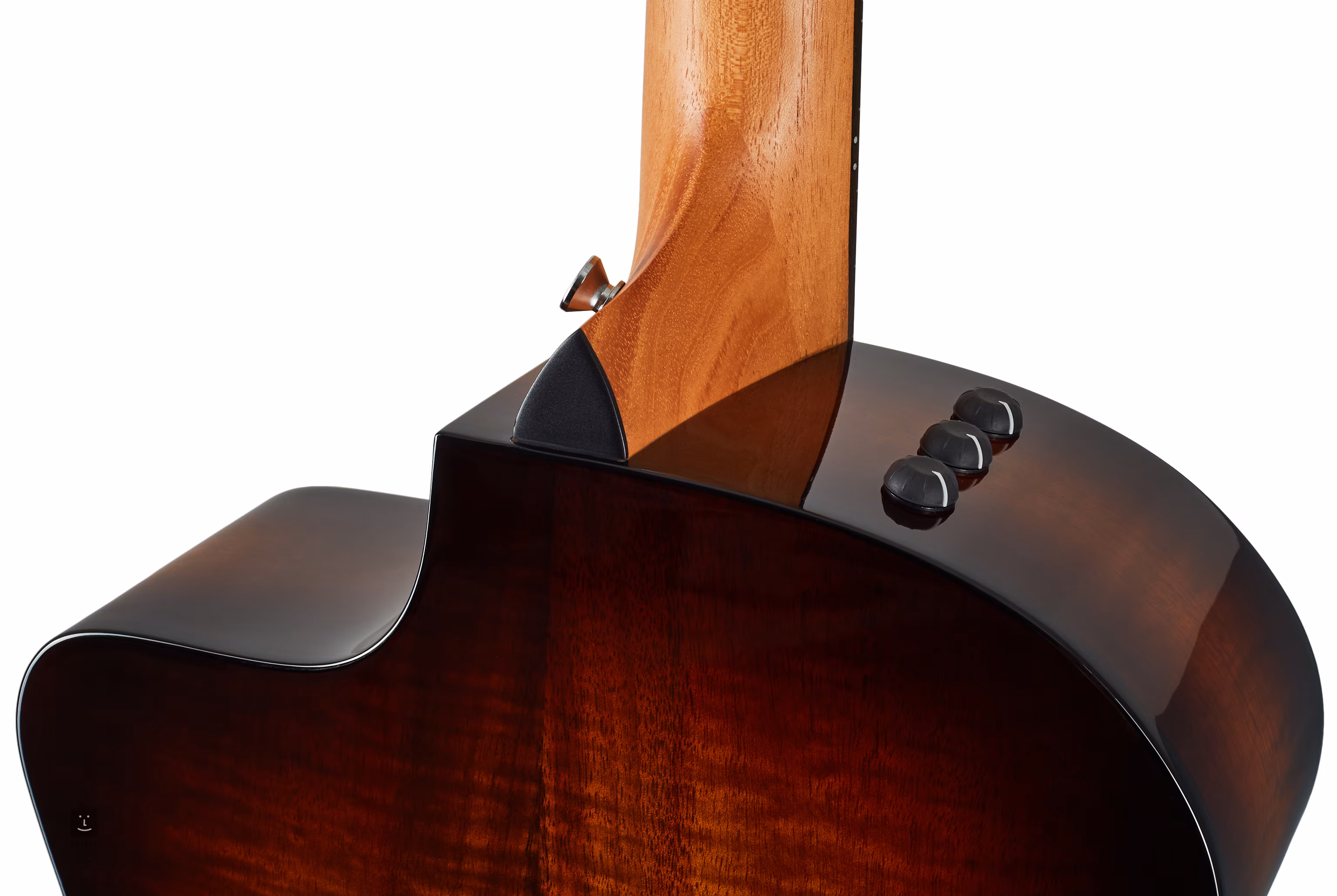 Stabilitu ladění zaručuje uchycení strun přes nultý pražec z materiálu NuBone v ebenové kobylce a niklových mechanikách Taylor s převodovým poměrem 18:1. Stylový vzhled nástroje podtrhují prvky v podobě černého pickguardu, černé obvodové lemovky těla, rozety z imitace perleti, lesklého laku a barevné úpravy těla Shaded Edgeburst a ebenové dýhy na hlavici kytary ozdobené logem Taylor.