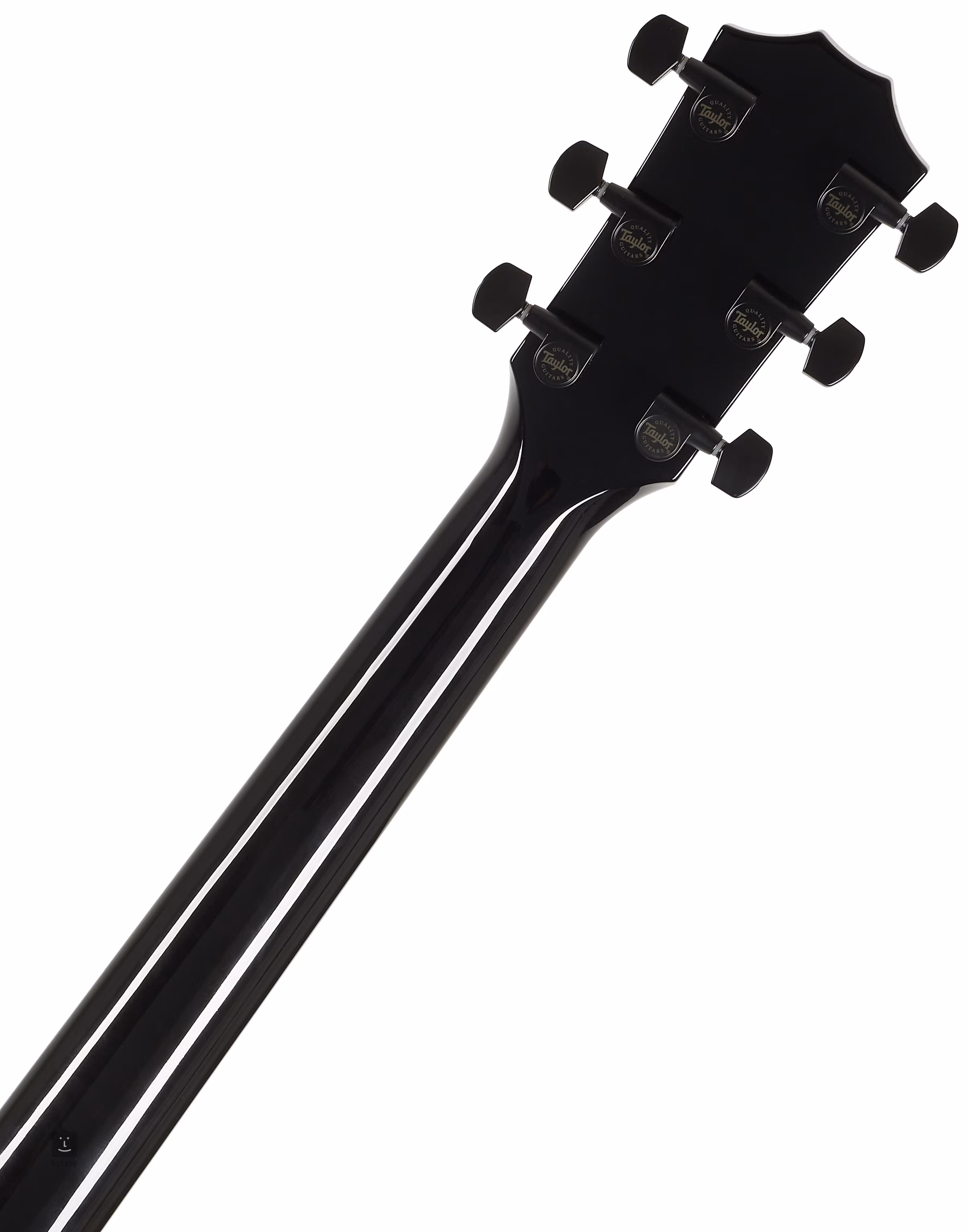 K javorovému krku je přilepen ebenový hmatník osazený dvaceti pražci. Stabilitu ladění zaručuje uchycení strun přes nultý pražec z materiálu NuBone v ebenové kobylce a mechanikách Taylor v provedení Satin Black. Stylový vzhled nástroje podtrhuje lesklý černý finiš těla i krku a tradiční prvky v podobě černého pickguardu, bílé obvodové lemovky těla a ebenové dýhy na hlavici kytary ozdobené logem Taylor.
