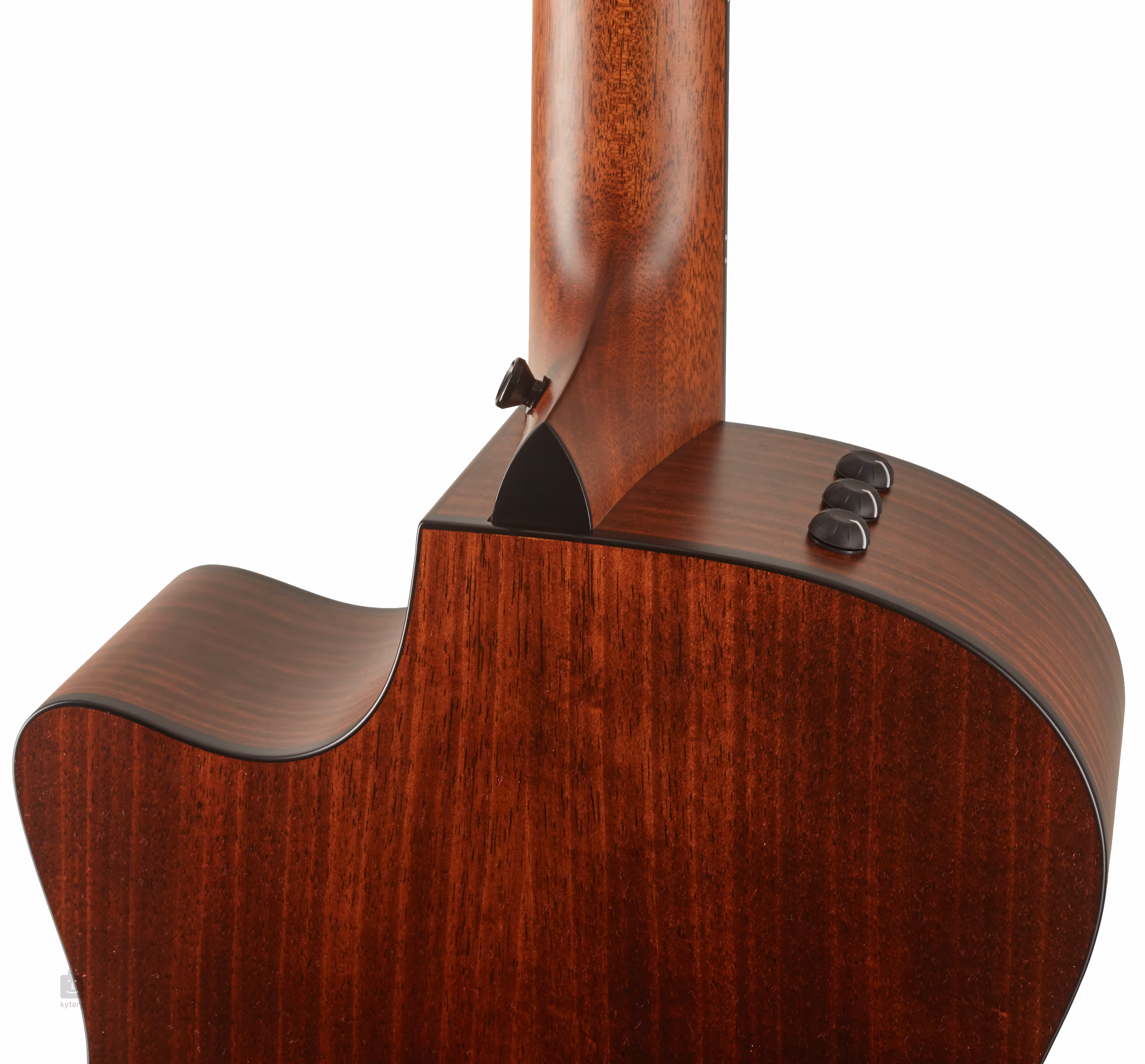 Přední deska kytary je zhotovena z masivního tropického mahagonu, zadní deska a luby z též masivního tasmánského blackwoodu. Tato kombinace poskytuje kytaře vřelou a dynamickou odezvu. K mahagonovému krku, připojenému k tělu na čtrnáctém pražci, je přilepen ebenový hmatník zkrášlený zdobnými intarziemi ve tvaru malých démantů z imitace perleti. Díky delší barytonové menzuře a ladění od H nabízí struny standardní pnutí, takže zcela odpadají obavy z těžkého dohmatu, rychlejší únavy prstů apod. Působivý vzhled nástroje podtrhuje povrchová úprava přední desky v provedení Shaded Edge Burst, černá lemovka těla doplněná černobílými linkami a praktický černý pickguard.