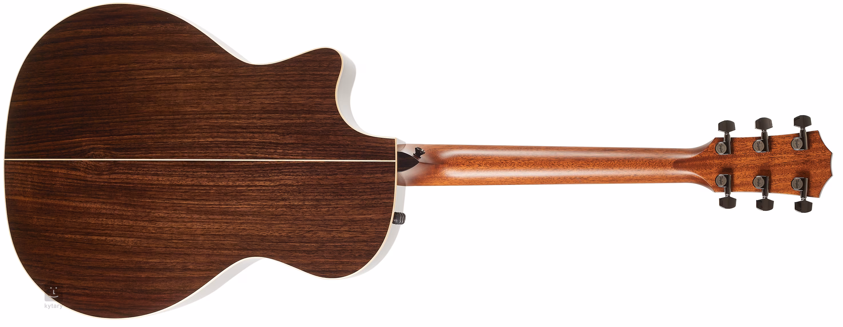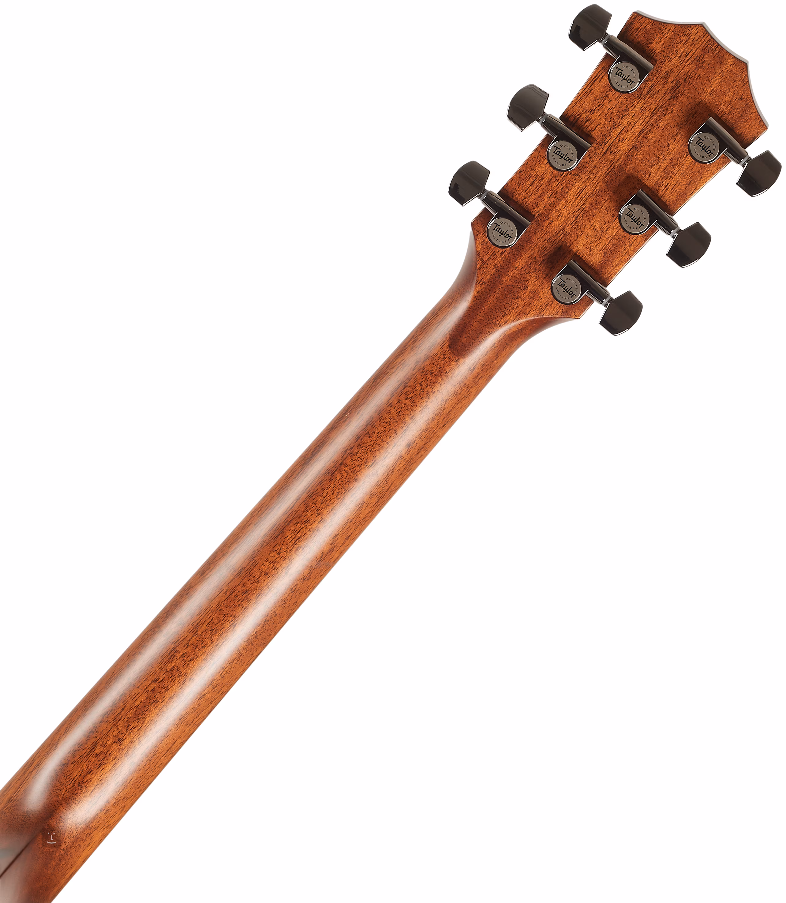 K mahagonovému krku je přilepen hmatník ze západoafrického ebenu osazený dvaceti pražci. Dohmat na vyšších polohách hmatníku usnadňuje jemný zaoblený spodní výřez těla, optimální herní pohodlí poskytuje ergonomická ramenní opěrka z indického palisandru (prvek nově převzatý z řady Deluxe). Stabilitu ladění zaručuje uchycení strun přes nultý pražec Black TusQ v ebenové kobylce a firemních niklových mechanikách. Mezi další stylové prvky patří lesklý černý top kytary, javorová lemovka doplněná palisandrovou výložkou, rozeta složená z prstenců perleti (Abalone) a palisandru, palisandrový pickguard, zdobné perleťové polohové značky (Mother of Pearl), ebenové kolíčky do kobylky s perleťovými tečkami a ebenová dýha na hlavici kytary ozdobená perleťovým (Mother of Pearl) logem Taylor.