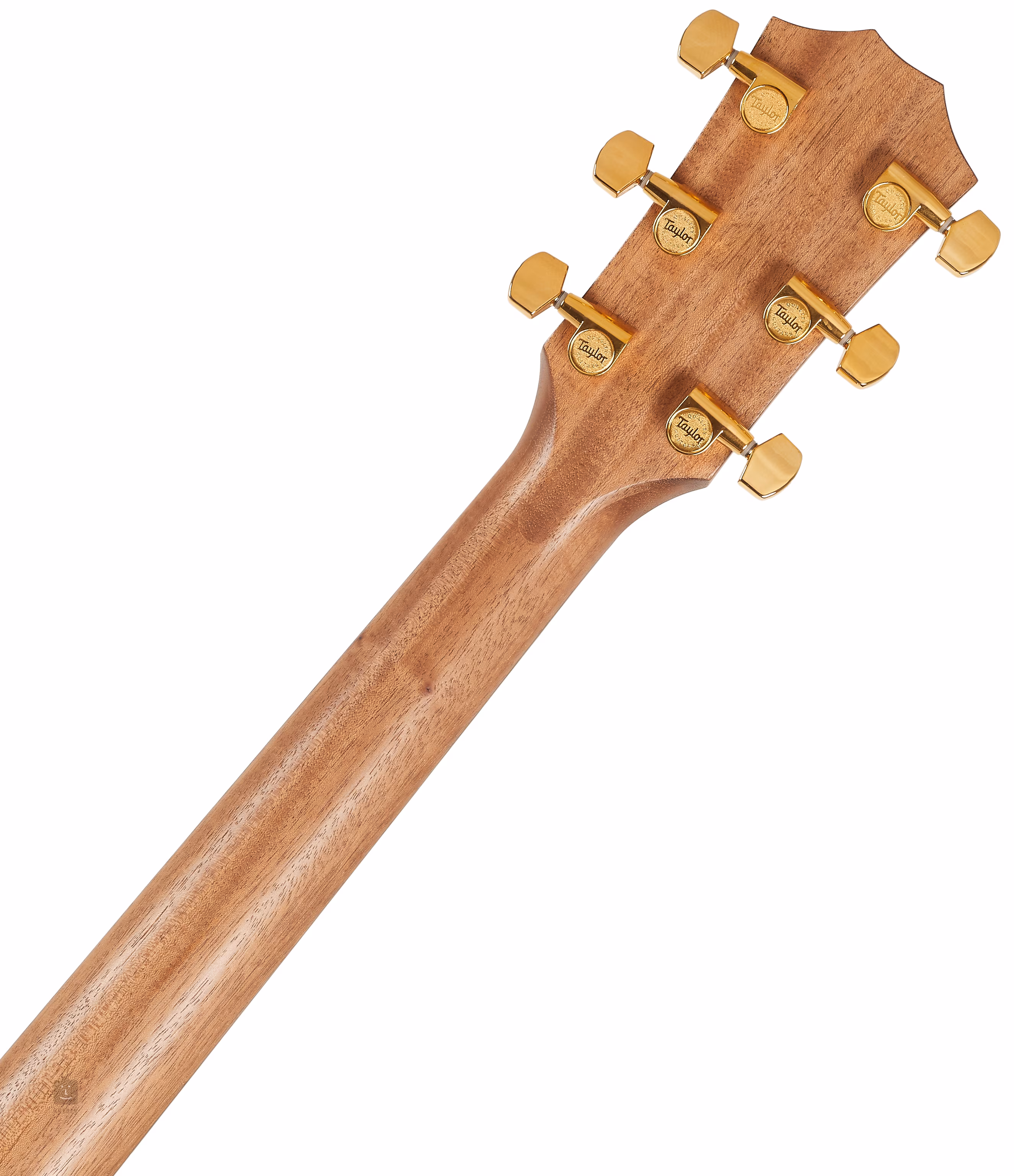 Smrkovou přední desku kytary zdobí tenký matný lak a finiš Tobacco Sunburst. Použitím ořechu na zadní desce a lubech se značka vrací k raným Taylor designům, zároveň kytaře poskytuje vyvážený poměr basů a výšek a jasně artikulované středy. Patentované žebrování V-Class zlepšuje vlastnosti kytary ve třech hlediscích – zvyšuje hlasitost nástroje, prodlužuje sustain a zlepšuje intonaci. Spodní výřez těla nabízí dobrý dohmat i na vyšších polohách hmatníku.