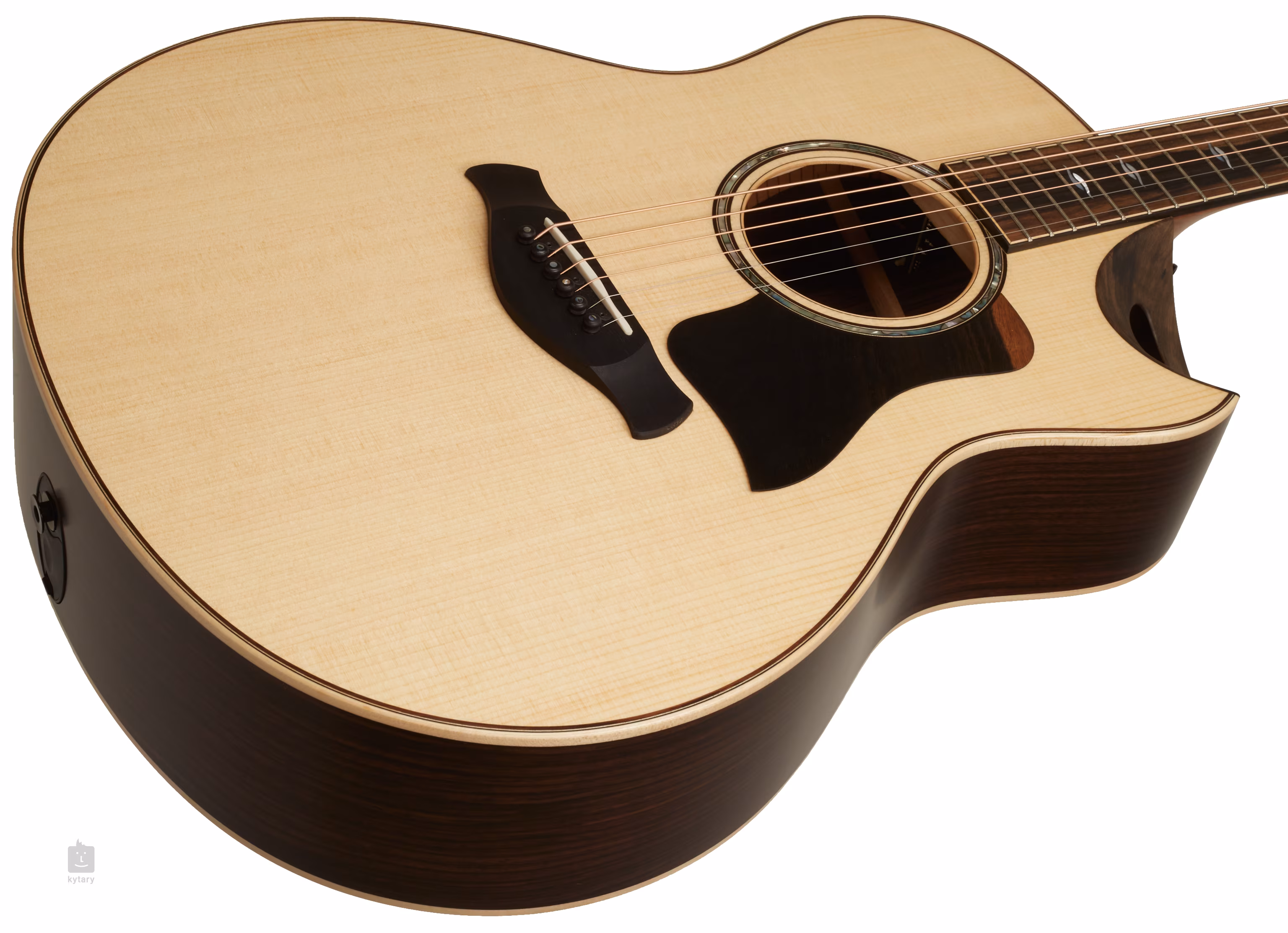 K mahagonovému krku je přilepen ebenový hmatník osazený dvaceti pražci. Orientaci po jeho ploše usnadňují zdobné perleťové intarzie (Shell, Mother of Pearl). Spodní výřez těla (Soundport cutaway) s ozvučným otvorem nejen, že poskytuje snadný dohmat i na nejvyšších polohách hmatníku, ale zároveň prostřednictvím druhého ozvučného otvoru dává akustickému zvuku kytary zcela nový rozměr. Stabilitu ladění zaručuje uchycení strun přes nultý pražec z materiálu TusQ v ebenové kobylce a mechanikách renomované značky Gotoh s převodovým poměrem 21:1. Mezi další stylové prvky patří lemovka z figurovaného javoru doplněná palisandrovou výložkou, perleťová rozeta (Abalone), ebenový pickguard, hardware ve zlatém provedení a ebenová dýha na hlavici nástroje ozdobená perleťovým firemním logem (Mother of Pearl).