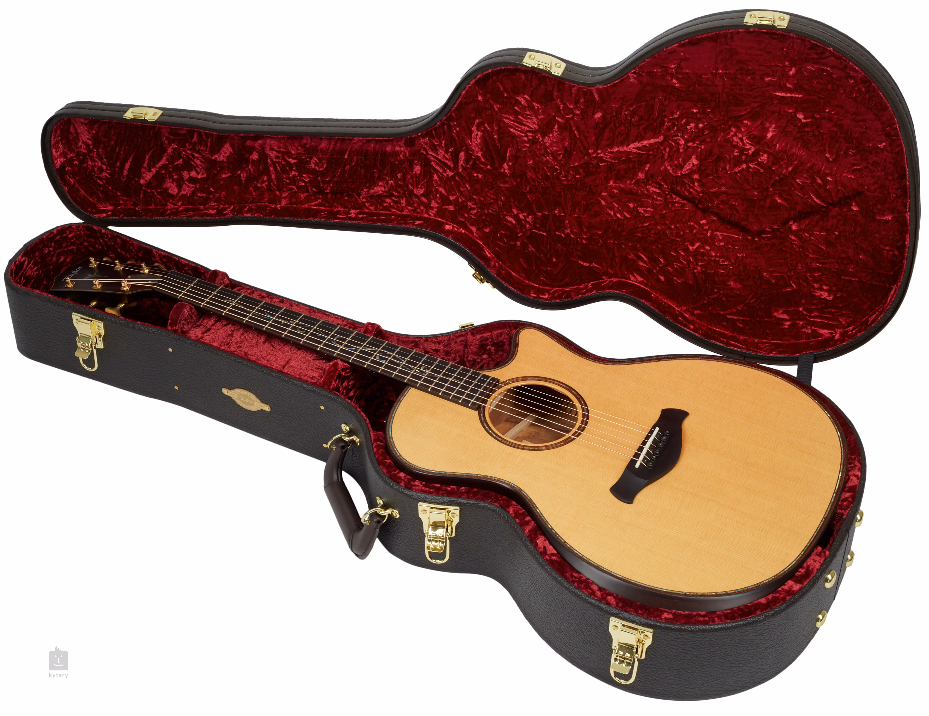 K mahagonovému krku je přilepen ebenový hmatník zkrášlený luxusním motivem v designu vinného listu. Jemný tvarovaný spodní výřez těla poskytuje snadný dohmat i na nejvyšších polohách hmatníku bez nutnosti měnit polohu levé ruky. Struny jsou uchyceny v ebenové kobylce s ebenovými kolíčky a kvalitních ladících mechanikách značky Gotoh. Působivý vzhled nástroje podtrhuje řada praktických i dekorativních prvků v podobě tvarované ramenní opěrky, rozety složené z prstenců perleti (Paua) a koa, ebenové lemovky těla doplněné výložkou z koa a perleti (Paua), hardware ve zlatém provedení a ebenové dýhy na hlavici ozdobené perleťovým logem Taylor (Mother of Pearl).